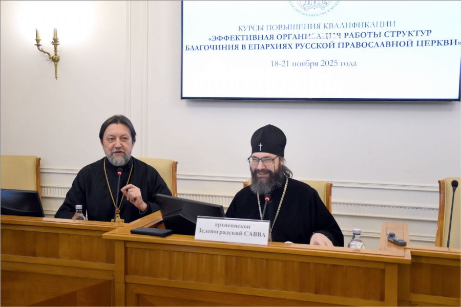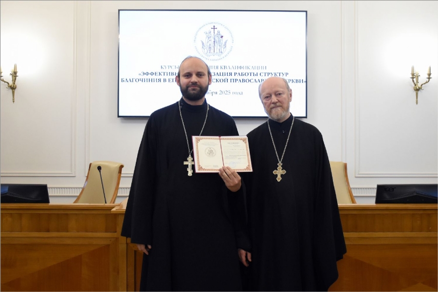 18-21 ноября 2025 г. в Общецерковной аспирантуре и докторантуре имени святых равноапостольных Кирилла и Мефодия прошли курсы повышения квалификации «Эффективная организация работы структур благочиния в епархиях Русской Православной Церкви». Обучение прошли слушатели из более 70 епархий Русской Православной Церкви. Среди участников курсов два священника Набережночелнинской епархии: настоятель Елабужского прихода Святой Троицы иерей Илья Кривов и клирик храма Казанской иконы Божией Матери города Набережные Челны иерей Иоанн Можаев.