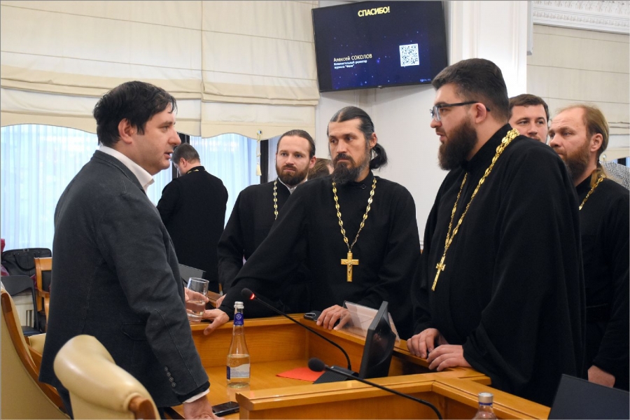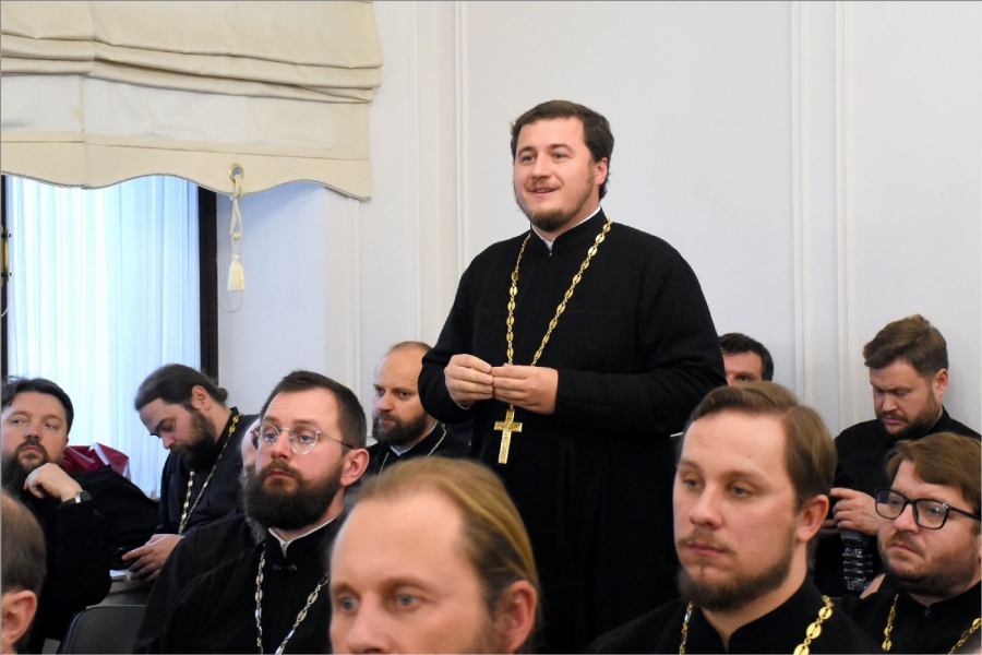 В первый день с приветственным словом к слушателям обратился ректор Общецерковной аспирантуры и докторантуры имени святых равноапостольных Кирилла и Мефодия протоиерей Максим Козлов.