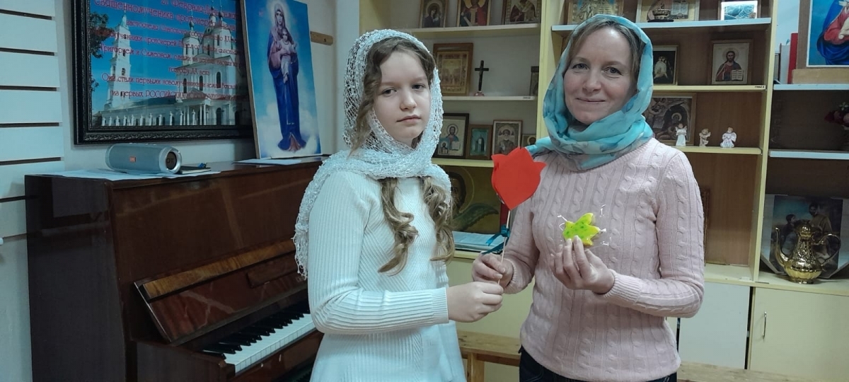 Дети Воскресной школы "Образок" подготовили праздничную программу и поздравили мам.
