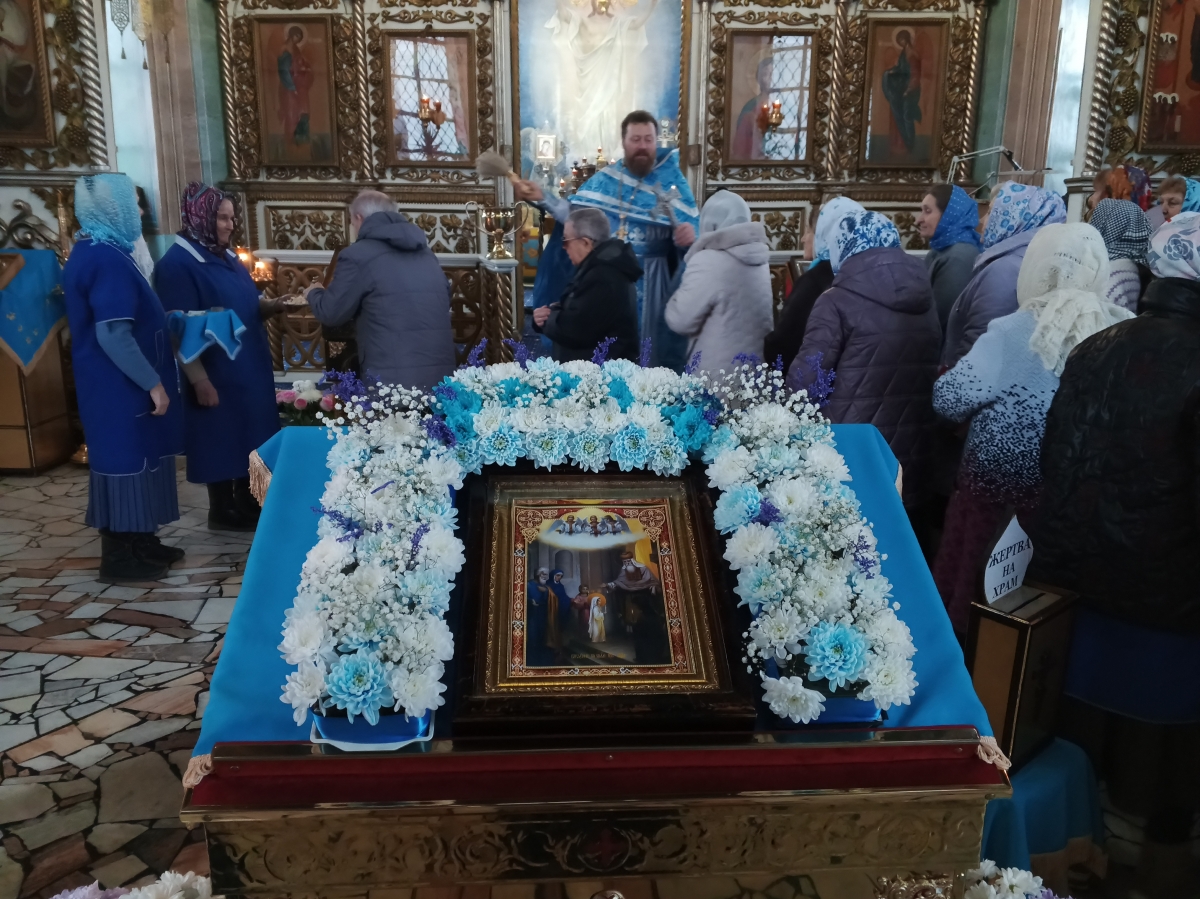 После чтения Евангелия отец настоятель обратился к верующим с пастырским словом проповеди об истории и значении праздника Введения во храм Пресвятой Богородицы.