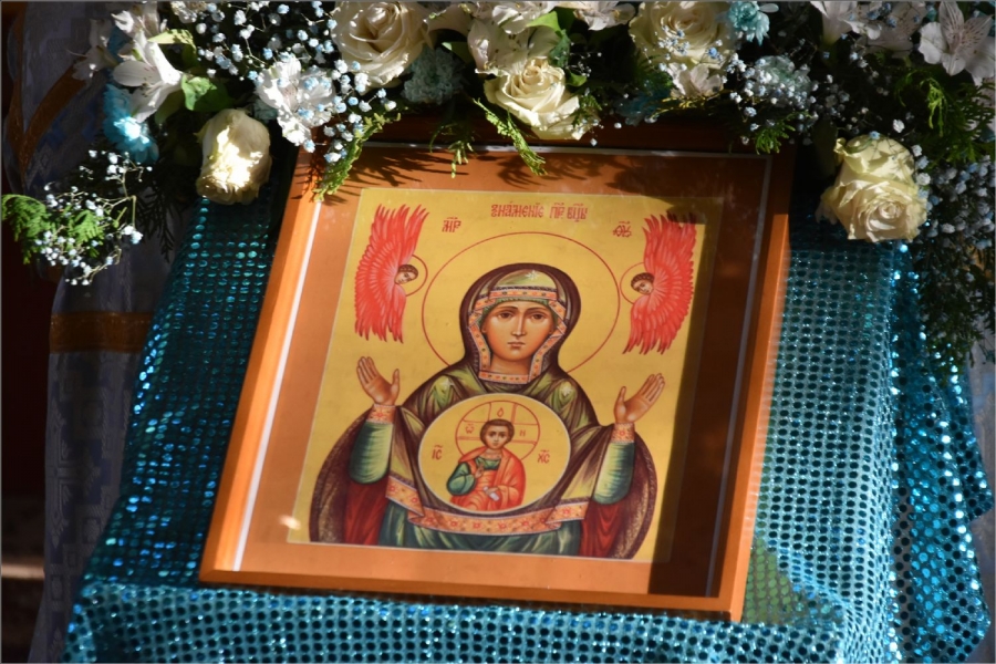 «Икона Божией Матери «Знамение» — особая, удивительная. Знамение Божией Матери — это знак победы над злом во имя мира, единства и добра. Богородица, воздевая руки к небу, непрерывно за нас молится, а в медальоне — Ее младенец, Господь наш Иисус Христос. Этот образ еще называют «Воплощение»: через Ее пречистую плоть сам Бог сошел на землю. Он стал одним из нас, чтобы быть рядом с нами, так же страдать, вместе с нами умирать и воскресать, побеждать зло. Все это идет через Его Пречистую Матерь, которая за нас молится.