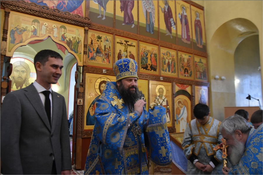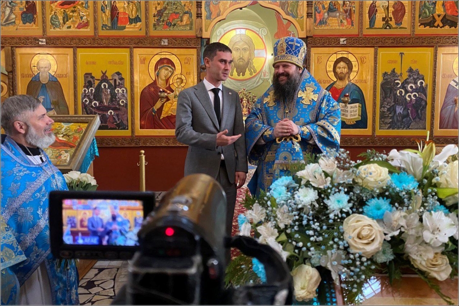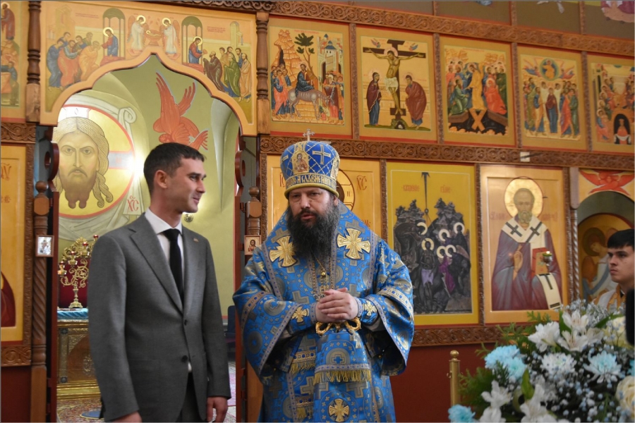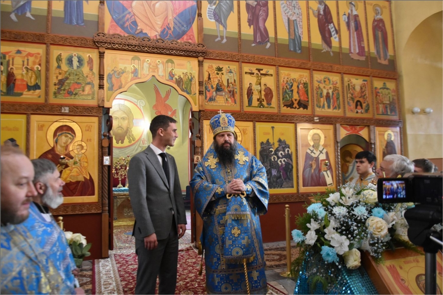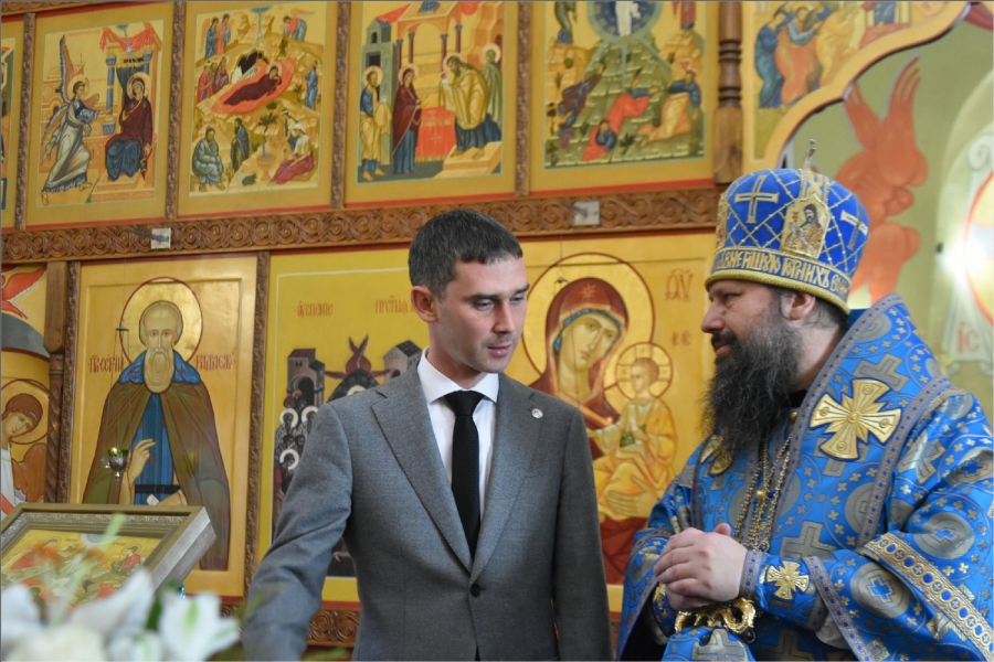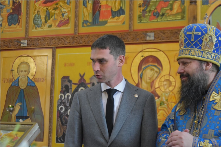 Глава Менделеевского муниципального района Роберт Искандаров пришел в храм, чтобы поприветствовать главу Набережночелнинской епархии, священнослужителей и прихожан храма. Он сказал: