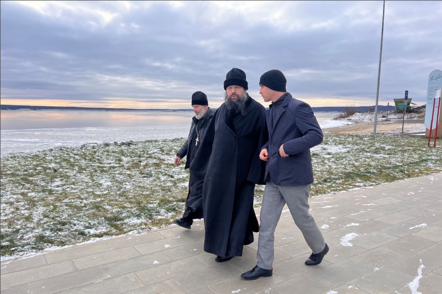После того, как епископ Гавриил благословил прихожан, он, в сопровождении главы района, осмотрел благоустройство источника и набережной у храма Богоявления Господня.