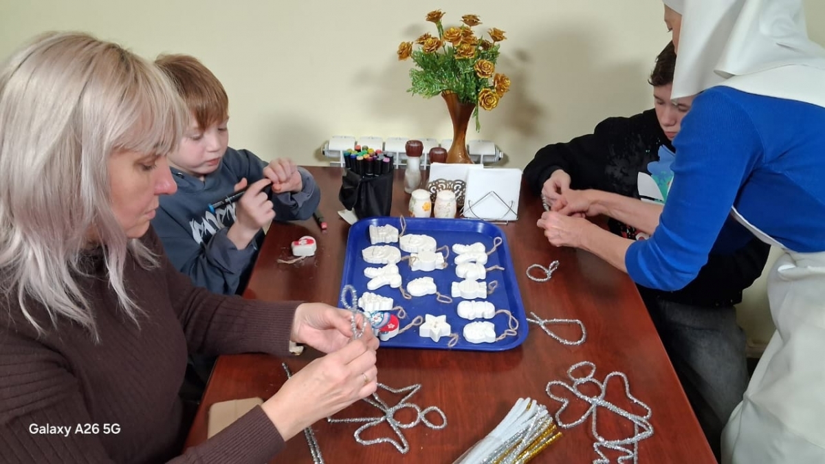 Мастер класс по изготовлению новогодних украшений из гибкой мишуры на проволоке и росписи елочных игрушек из гипса провела для ребят сестра милосердия Елена Трофимова.