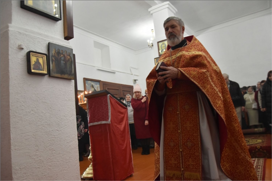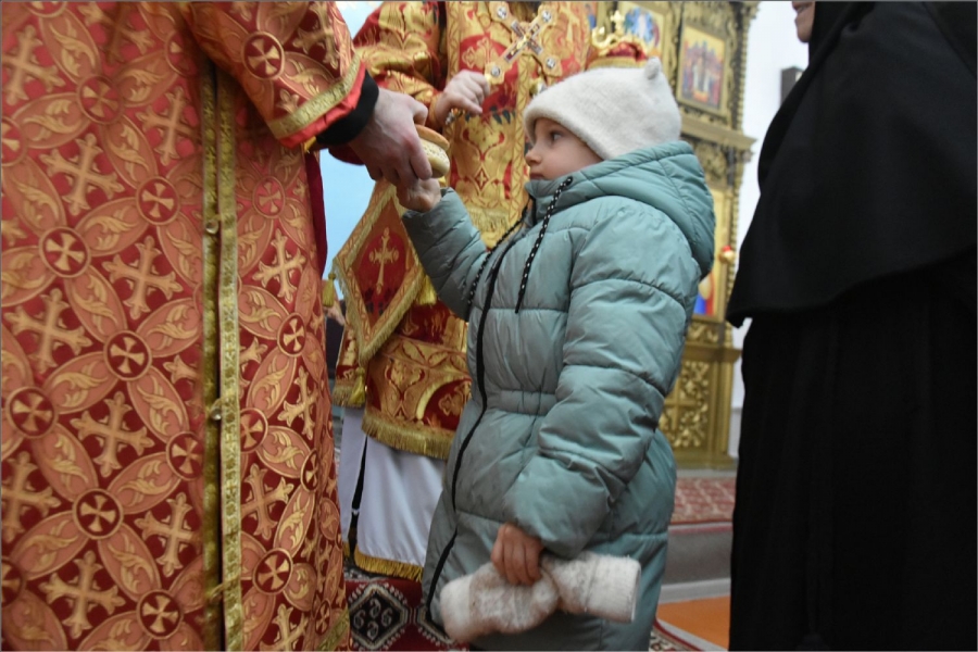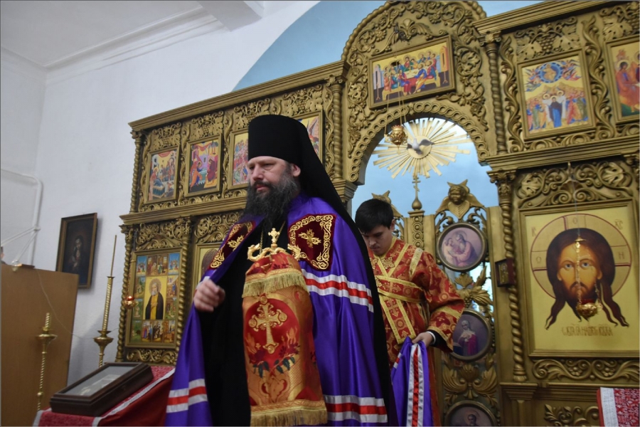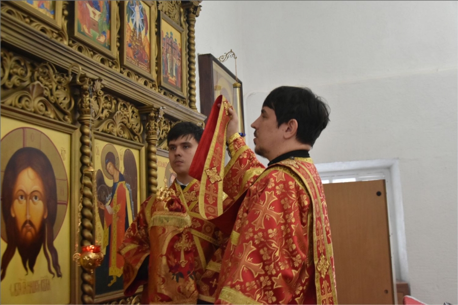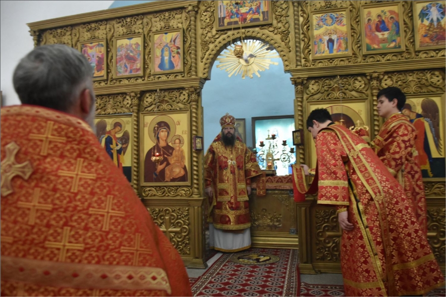 Богослужебные песнопения исполнил мужской состав архиерейского хора под управлением Евгения Моромова. Проповедь по запричастном стихе произнес иерей Вячеслав Ильин.