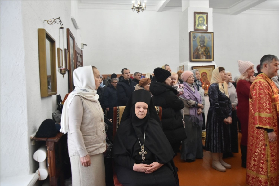 За богослужением молилась настоятельница монастыря игумения Вера, монахини, инокини, послушницы и прихожане монастырского храма.
