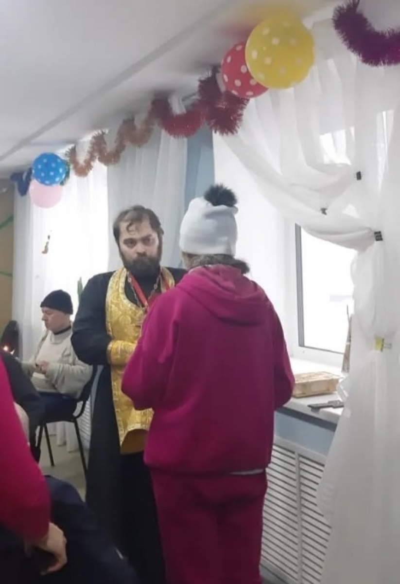 Отец Даниил исповедовал и причастил Святых Христовых Таин двадцать постояльцев интерната. Сестры милосердия раздавали причастникам просфоры, а с радостью всех угостили всех яблоками и мандаринами.