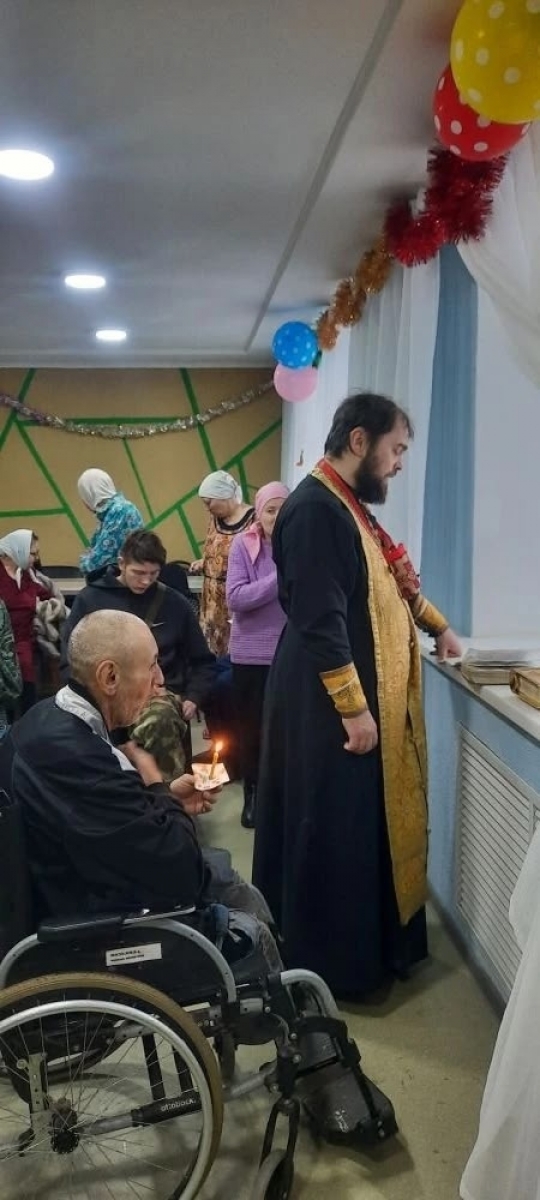 18 декабря 2025 года священник Елабужского Казанско - Богородицкого женского монастыря иерей Даниил Кривов, брат милосердия Алексей и сестры милосердия Ирина и Лариса Елабужского Свято - Елисаветинского общества милосердия посетили Елабужский Дом - интернат, предназначенный для граждан, имеющих психические расстройства.