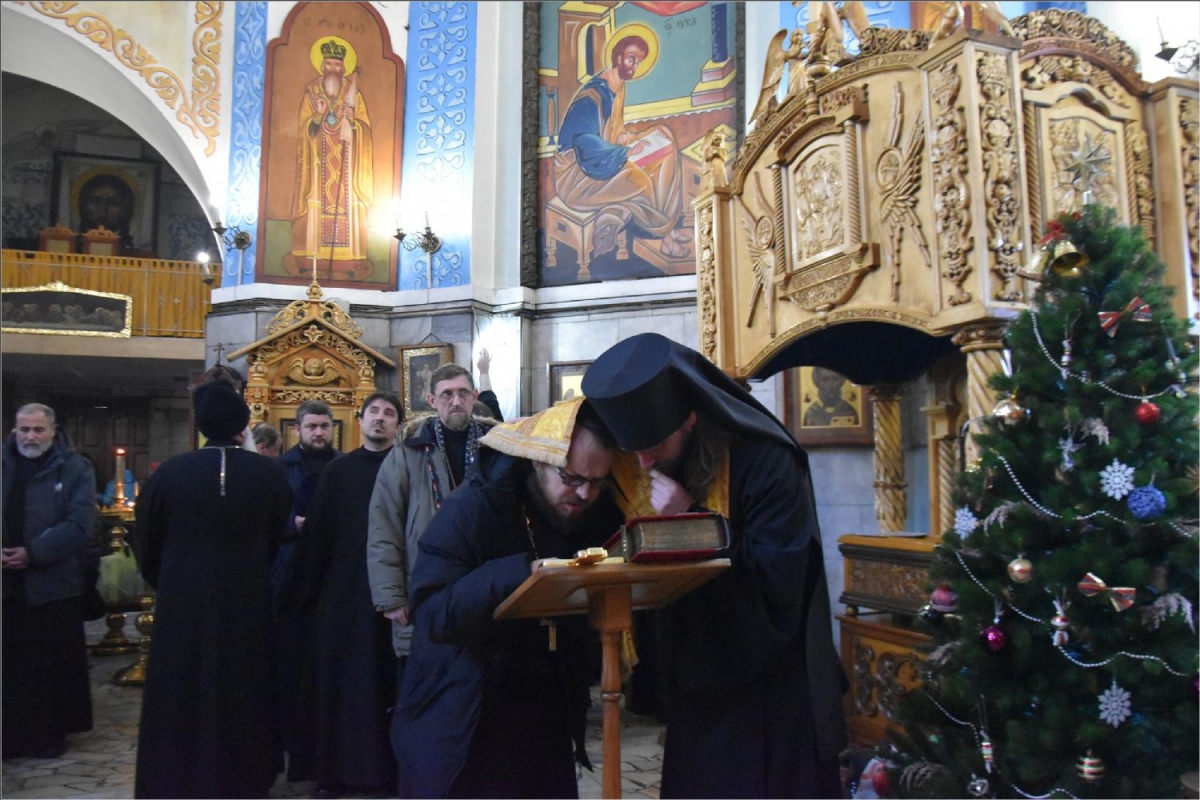 После общей молитвы, предваряющей исповедь, протоиерей Александр Филькин обратился к духовенству со словами наставления. Священник пожелал всем собравшимся в чистоте сердца встретить Рождество Христово и достойно нести послушание на благо Святой Церкви.