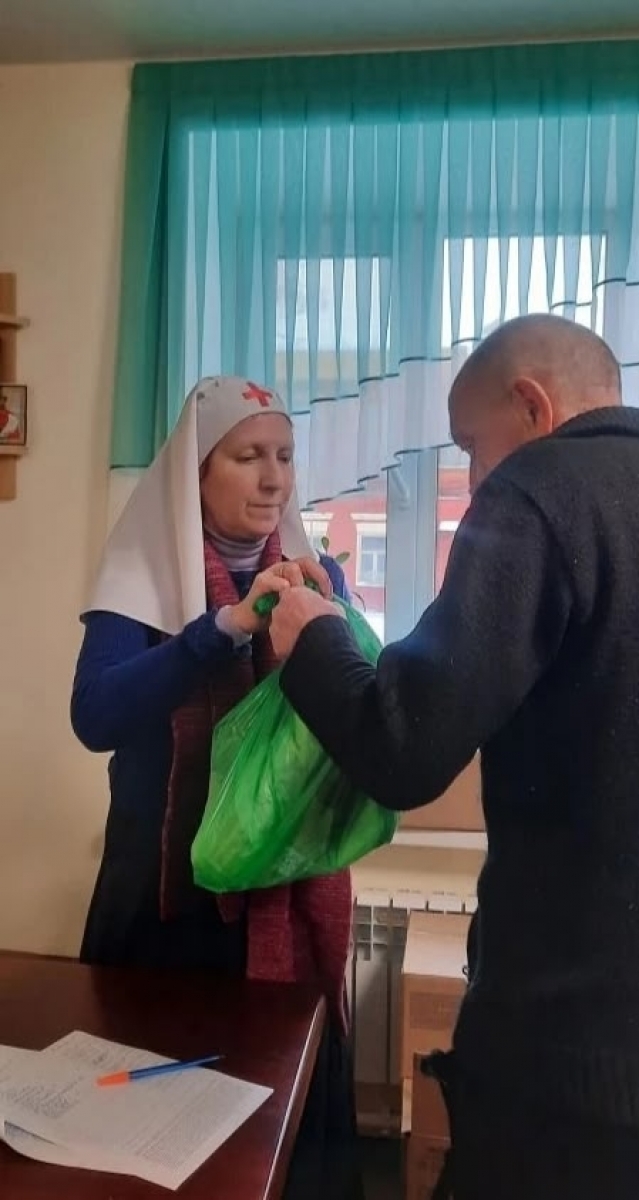 В течение двух недель многодетным семьям, инвалидам, семьям, воспитывающим детей - инвалидов и детей - сирот, беженцам с ЛНР, малообеспеченным жителям города и лицам, относящимся к другим категориям нуждаемости, братья и сестры милосердия передали 65 продуктовых наборов, собранных в ходе социальной акции. Для болящих людей доставка продуктовой помощи была организована на дом.