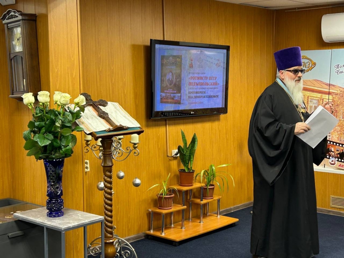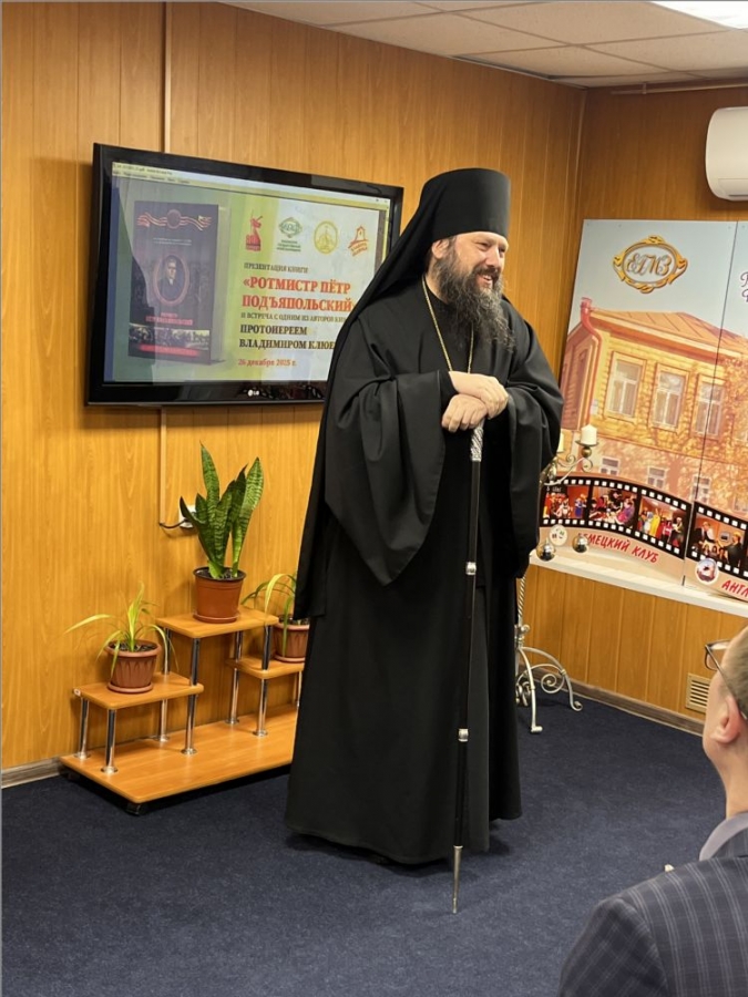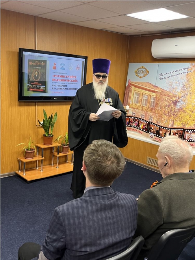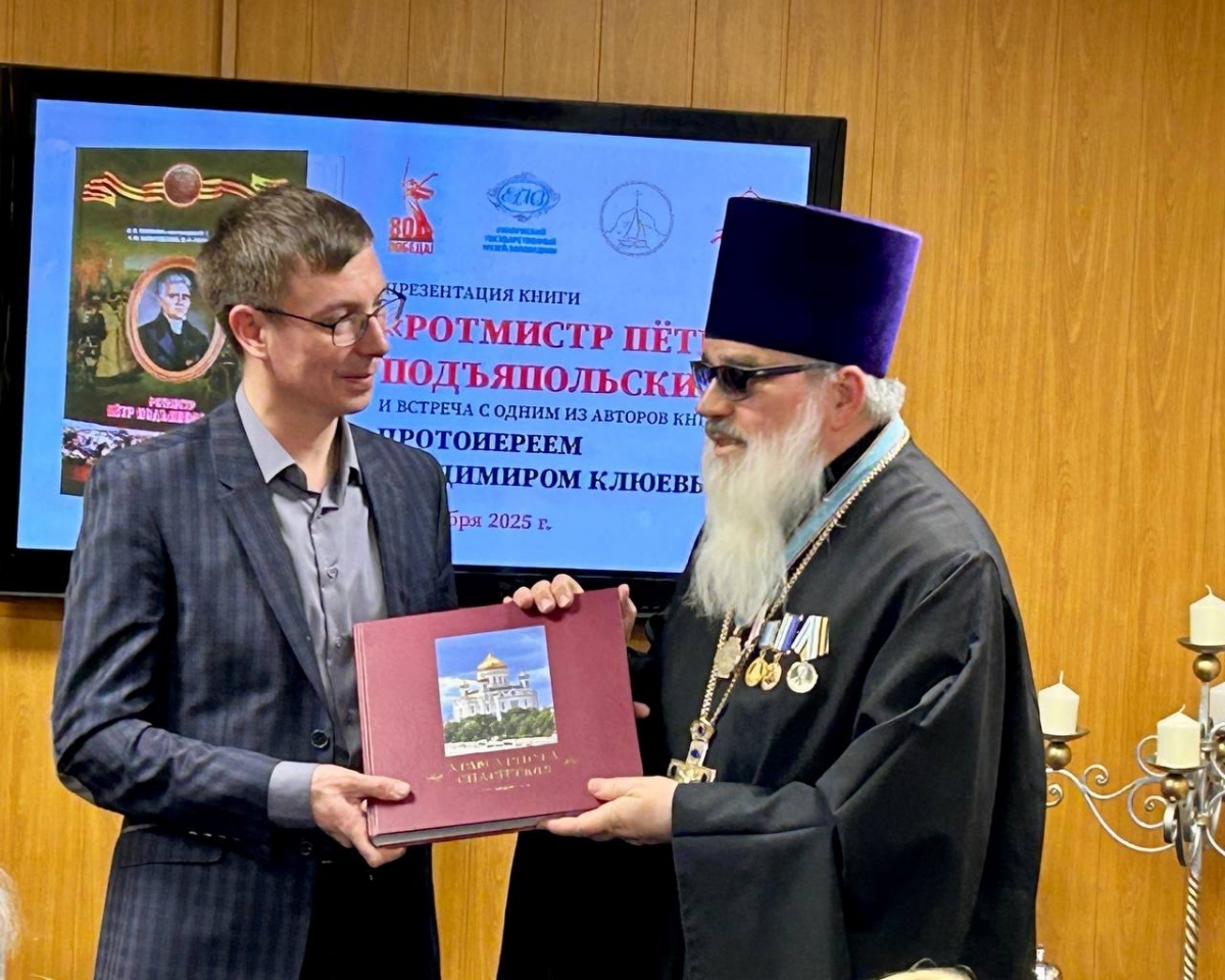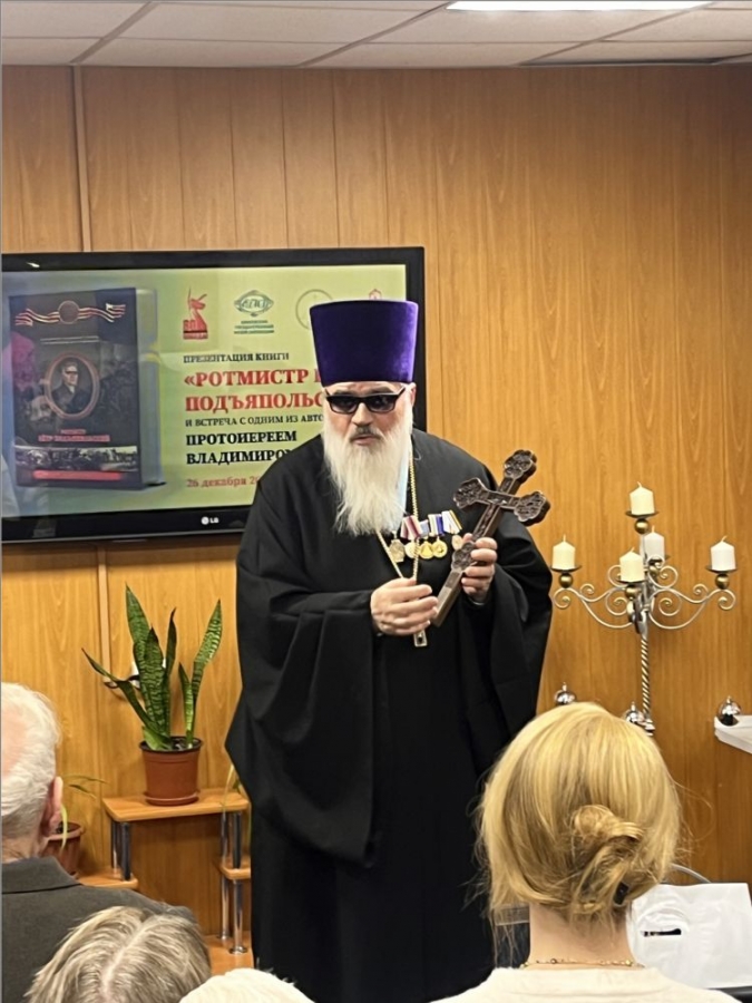 В своём приветственном слове протоиерей Владимир Клюев, как один из соавторов презентуемой книги, дал высокую оценку Елабуге и её музею-заповеднику за сохранение памяти кавалерист-девицы Надежды Дуровой, а затем рассказал о колоссальной работе, проведенной им и его сподвижниками по возвращении имени героя Отечественной войны Петра Подьяпольского. В итоге эта невероятная по своим масштабам работа стала частью представленной книги о командире Надежды Дуровой.