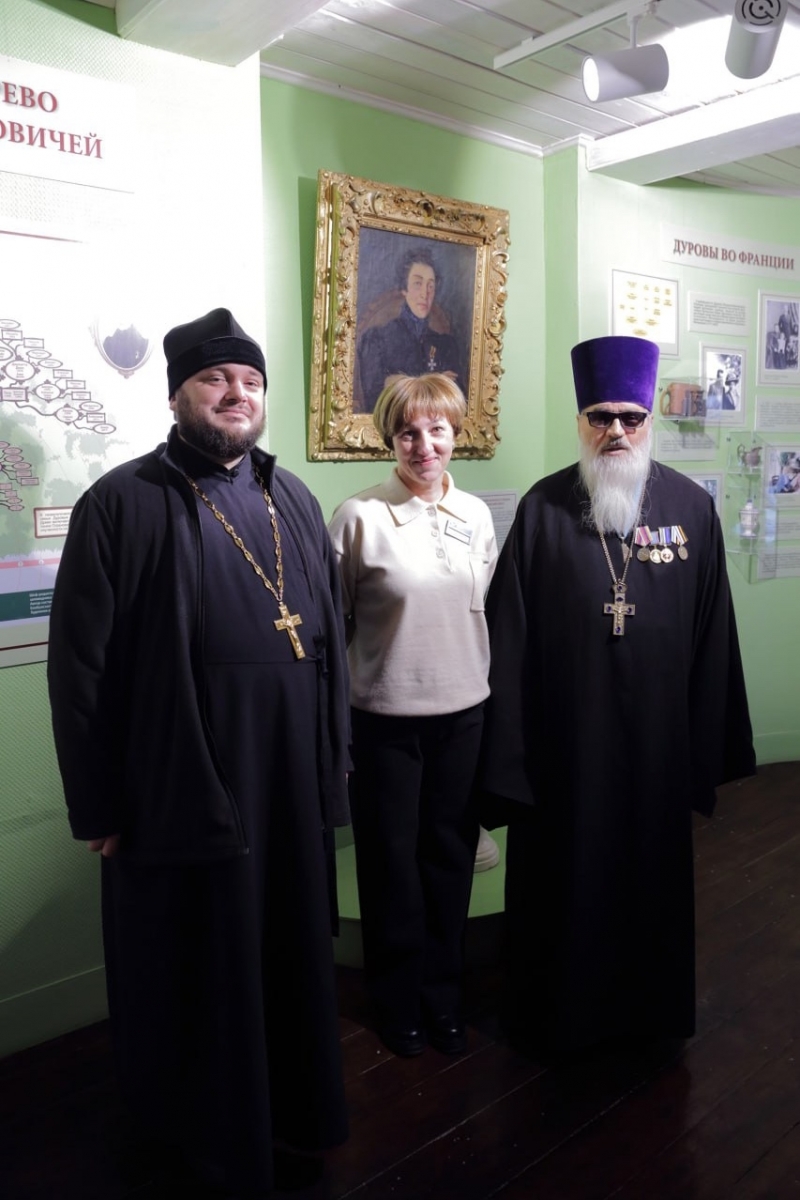 Далее протоиерей Владимир Клюев посетил Музей-усадьбу Н.А. Дуровой на Московской улице, 123. Именно в этом доме прошли последние годы жизни удивительной женщины. Экскурсию провела заведующая музеем, кандидат исторических наук Ольга Александровна Айкашева. Она с глубоким знанием всех деталей биографии своей героини, с очевидной душевной теплотой и любовью рассказала о жизни, подвигах и литературном творчестве Дуровой, чей музей с 1993 года бережно хранит память об этой уникальной личности.