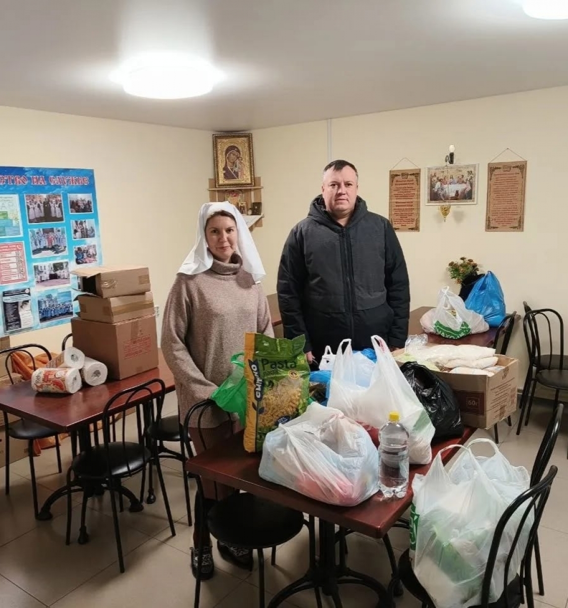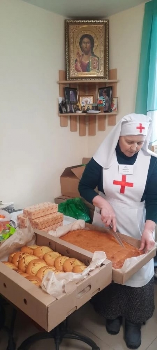 Людям, которые по состоянию здоровья не могут выйти из дома, сёстры милосердия и добровольцы общины доставили горячие обеды, продуктовые наборы, вещи первой необходимости и новогодние подарки на дом.