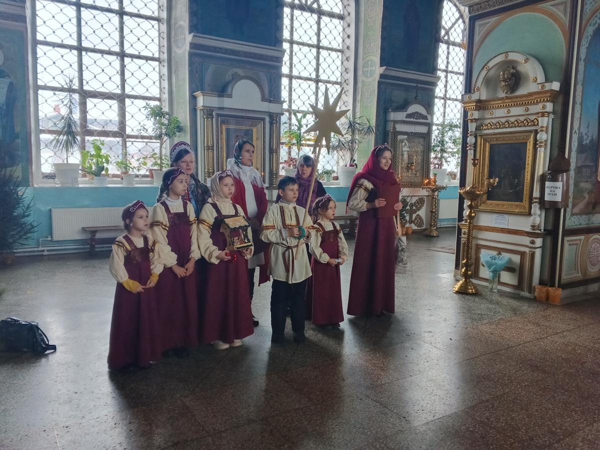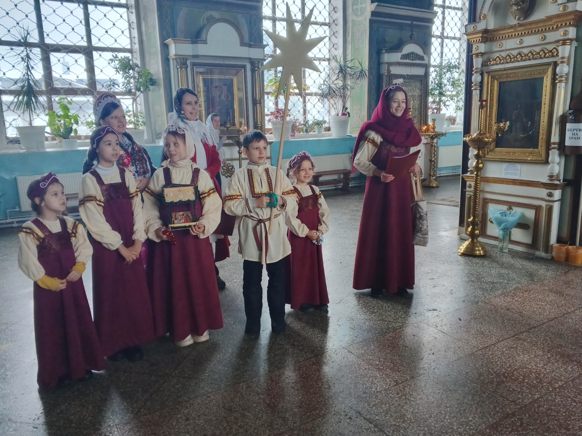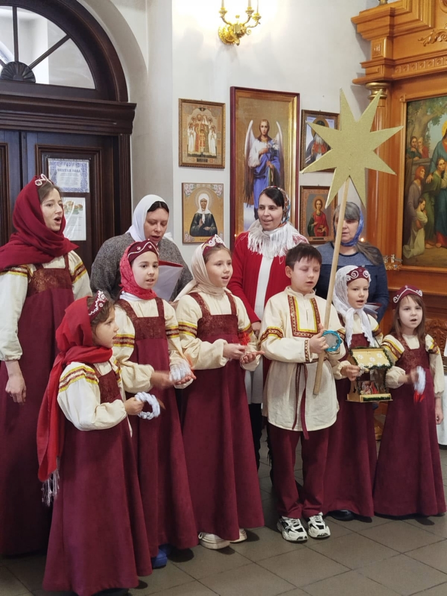 После богослужения творческая группа матушки Анны Павловой и Наталья Танаевой с детишками исполнили для прихожан рождественские колядки.