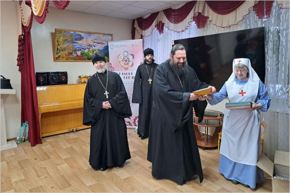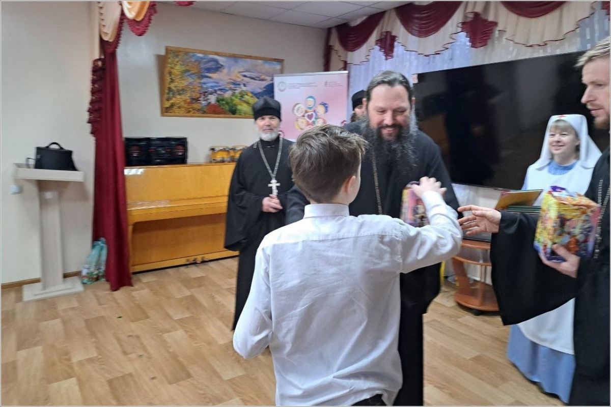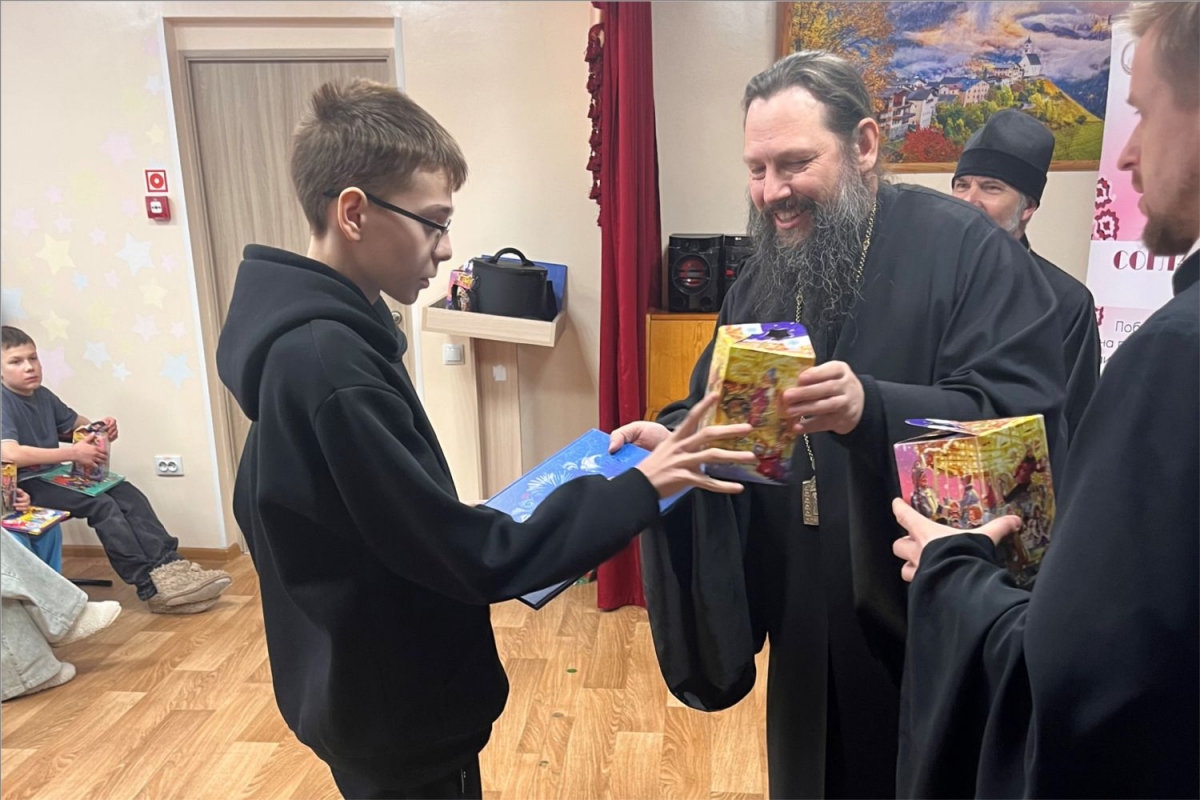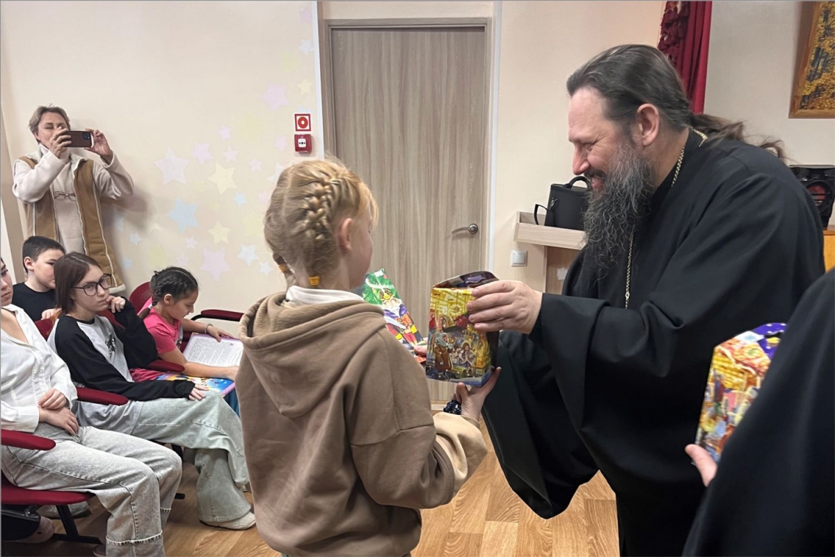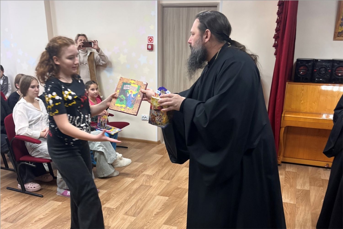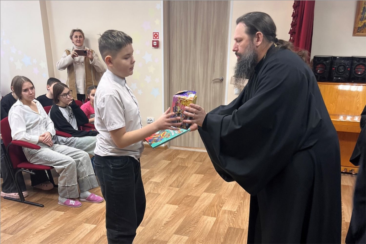 Ребята, проходящие реабилитацию в приюте, получили книги и сладкие подарки. Владыка рассказал, что такое Рождество Христово, и чудесные истории для детей.