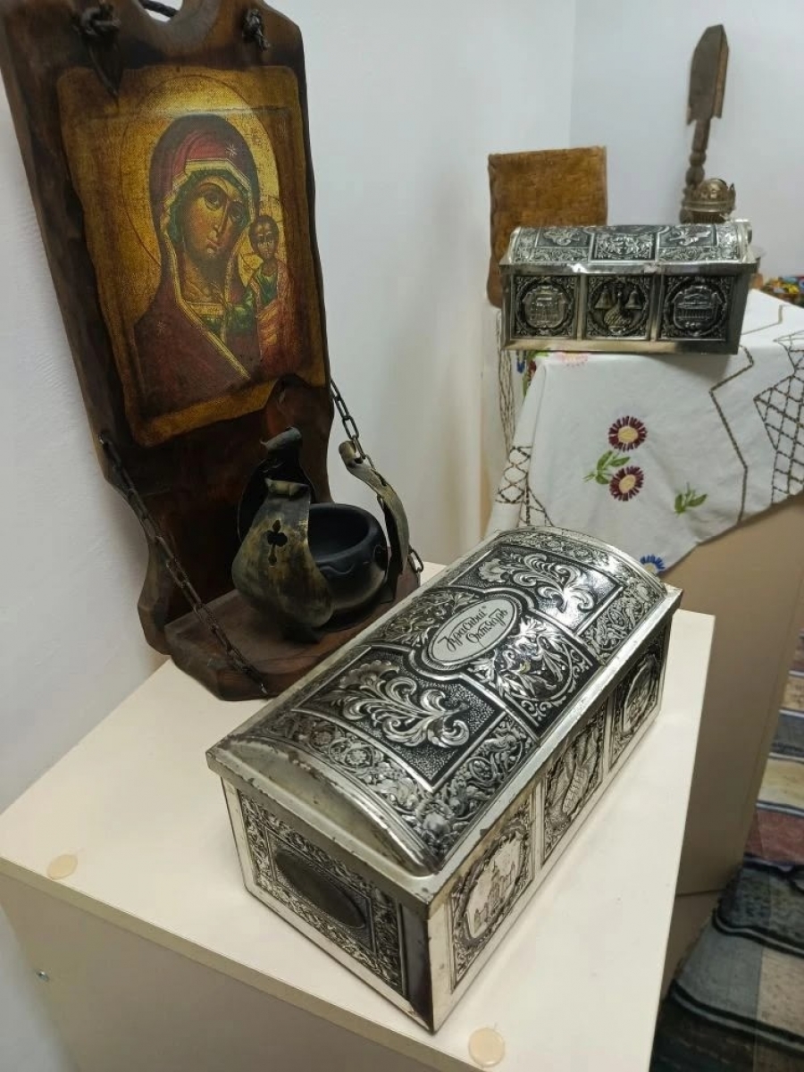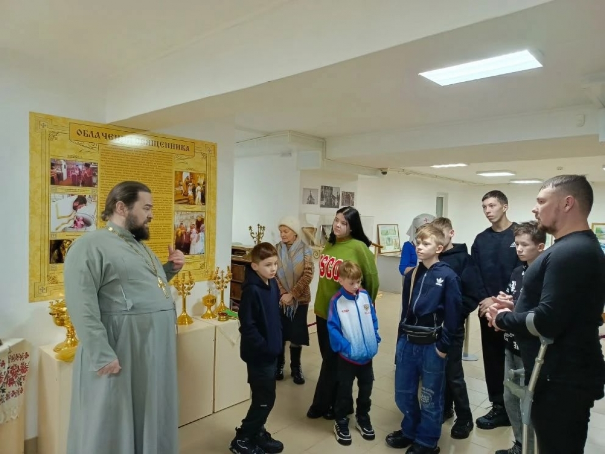 Батюшка ознакомил взрослых и юных посетителей с историко - культурными экспонатами музея. Музей разделён на тематические зоны: левая часть посвящена истории обители со времени основания до второй половины XX века, правая часть представляет период возрождения монастыря, которое началось в 1993 году, в центре расположены атрибуты алтаря, с помощью которых совершается главная служба — Божественная Литургия.