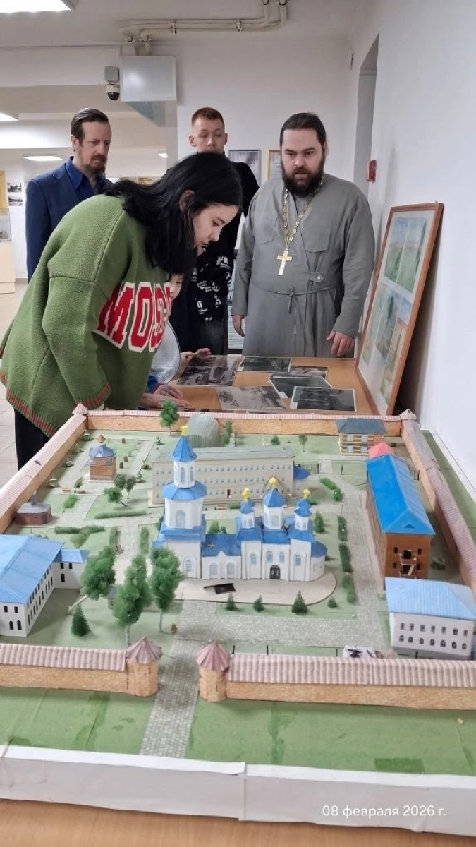 Отец Илия рассказал присутствующим, что возведение монастырского комплекса велось под началом купца первой гильдии И.И. Стахеева. Среди имен других благотворителей на средства которых шло строительство - Григорий Иванович и Дмитрий Иванович Стахеевы, Петр Капитонович Ушков. Гости музея узнали о церковных Таинствах, а также смогли увидеть облачения монахинь и священнослужителей, молитвенные чётки, церковную утварь и другие предметы.