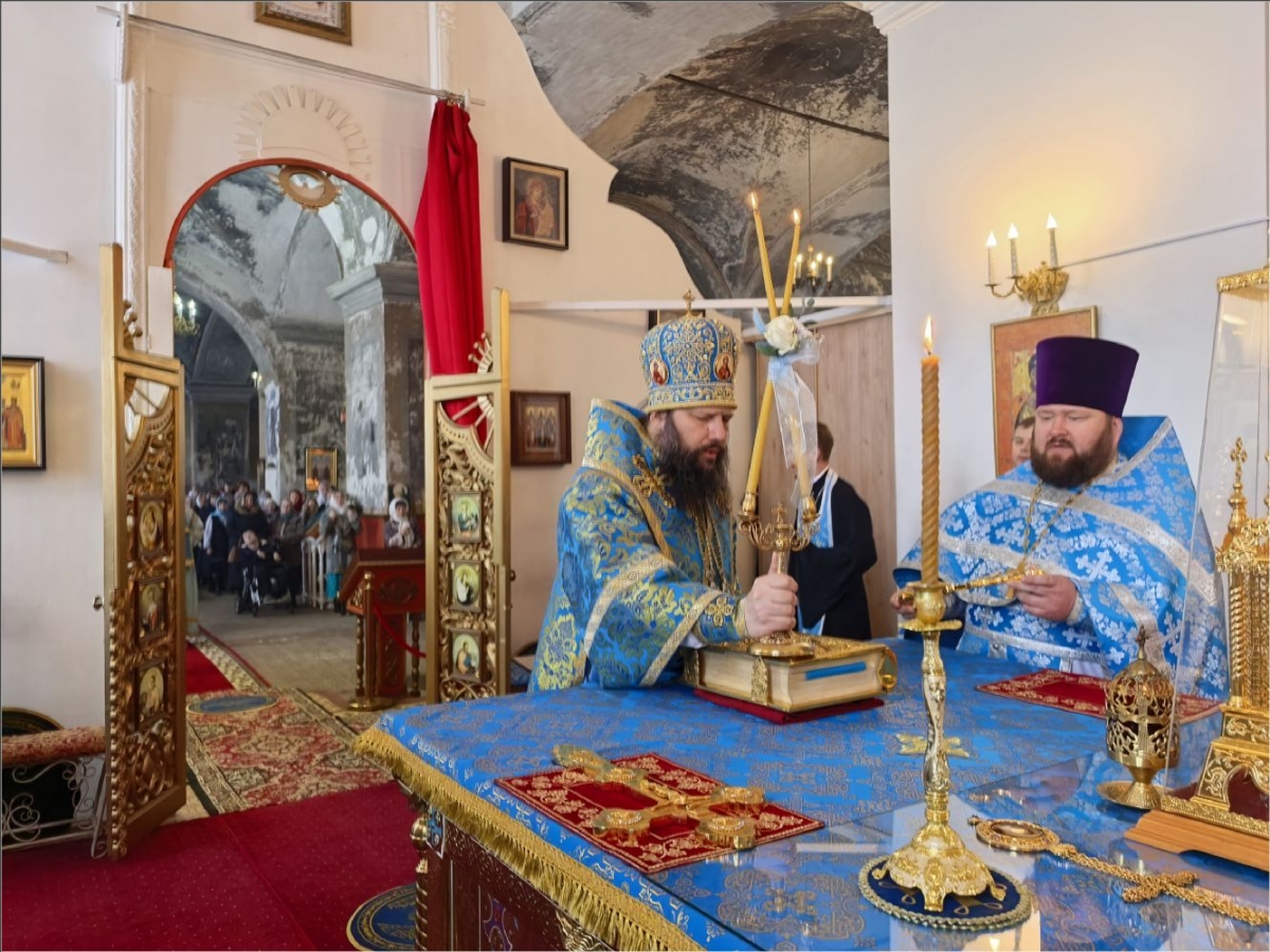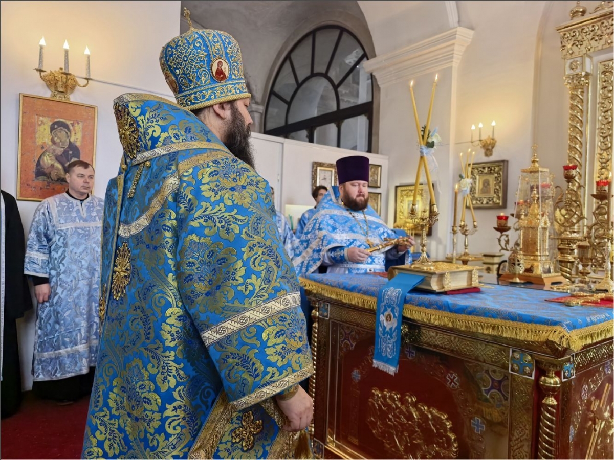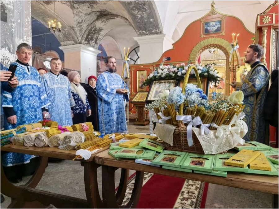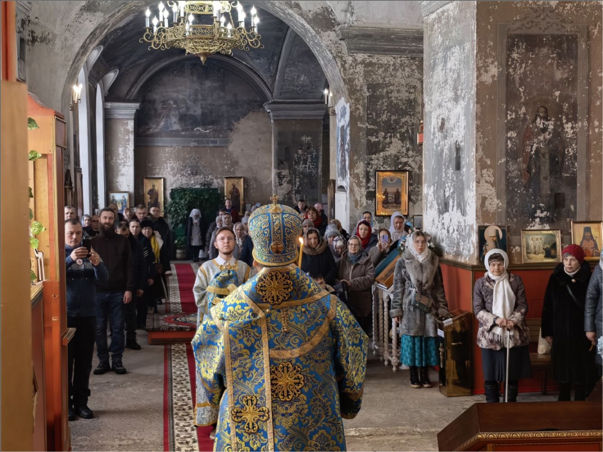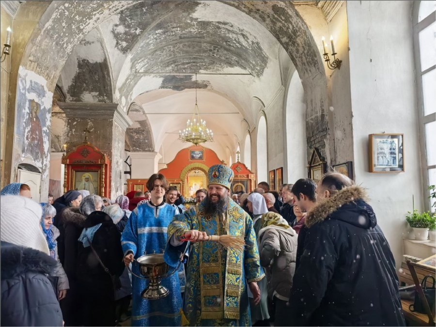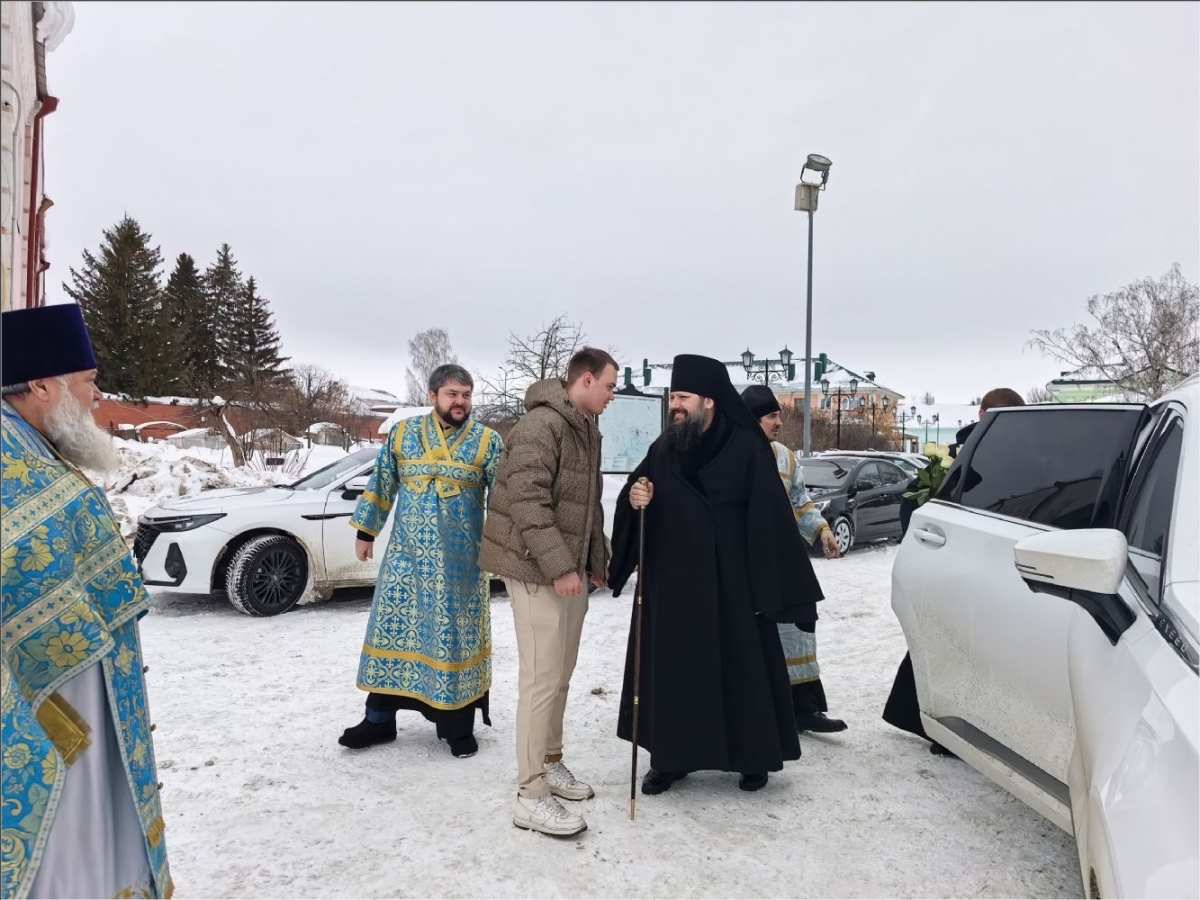 15 февраля 2026 года, в Неделю мясопустную, о Страшном Суде, праздник Сретения Господа Бога и Спаса нашего Иисуса Христа, епископ Набережночелнинский и Елабужский Гавриил совершил Божественную литургию в Спасском соборе города Елабуги.
