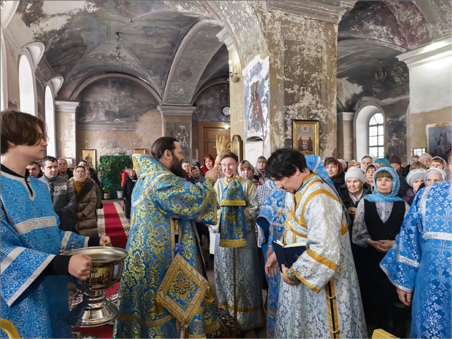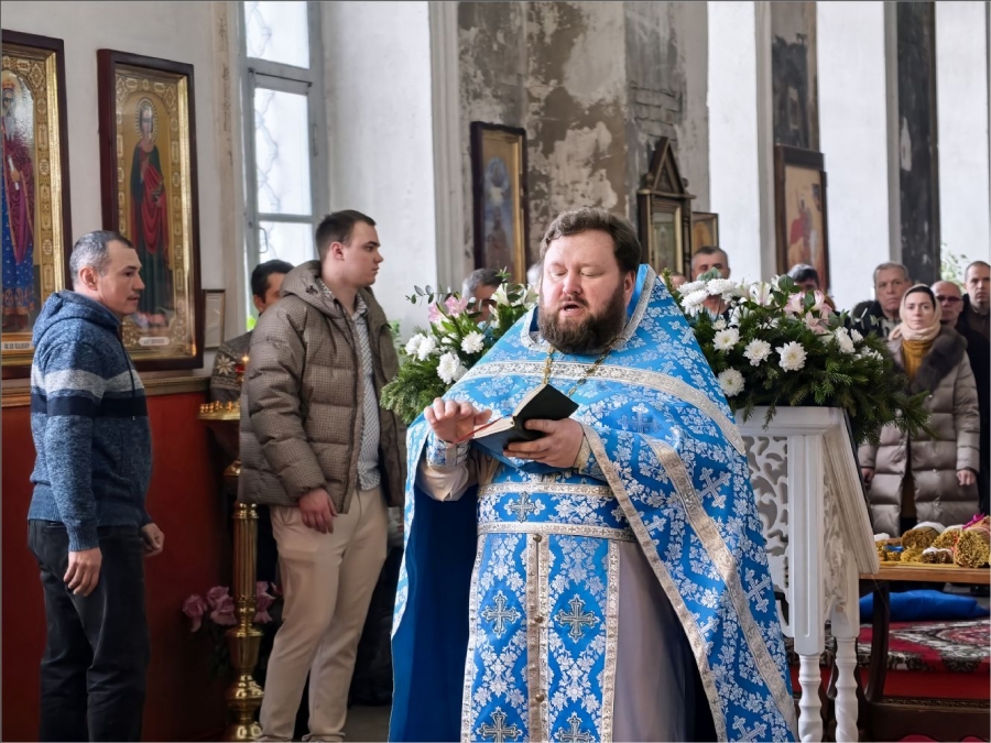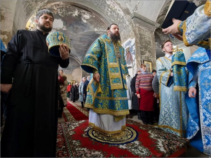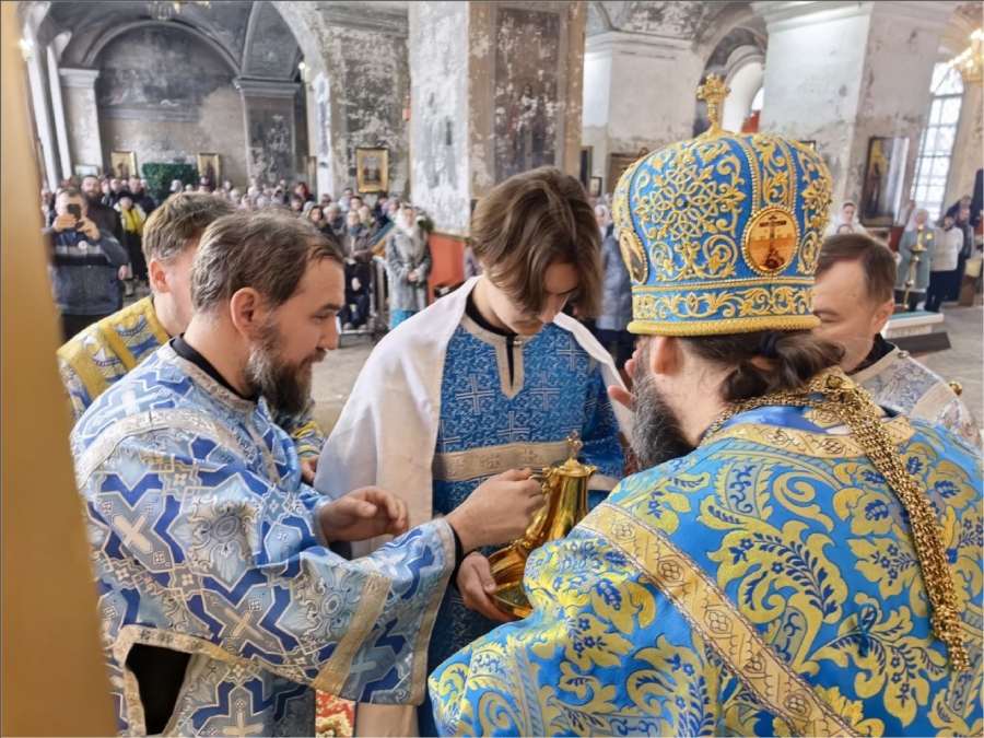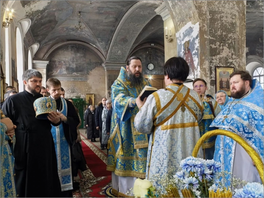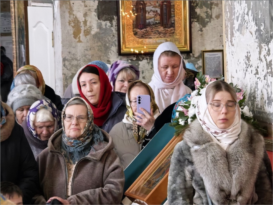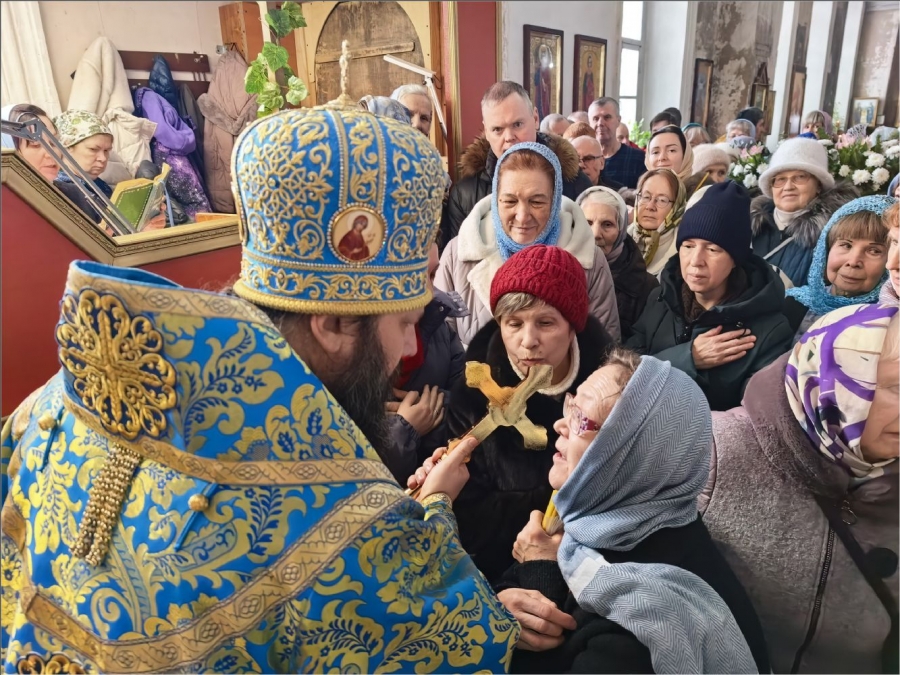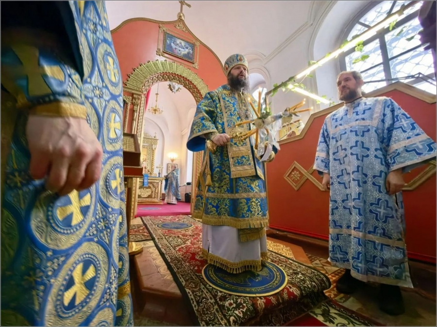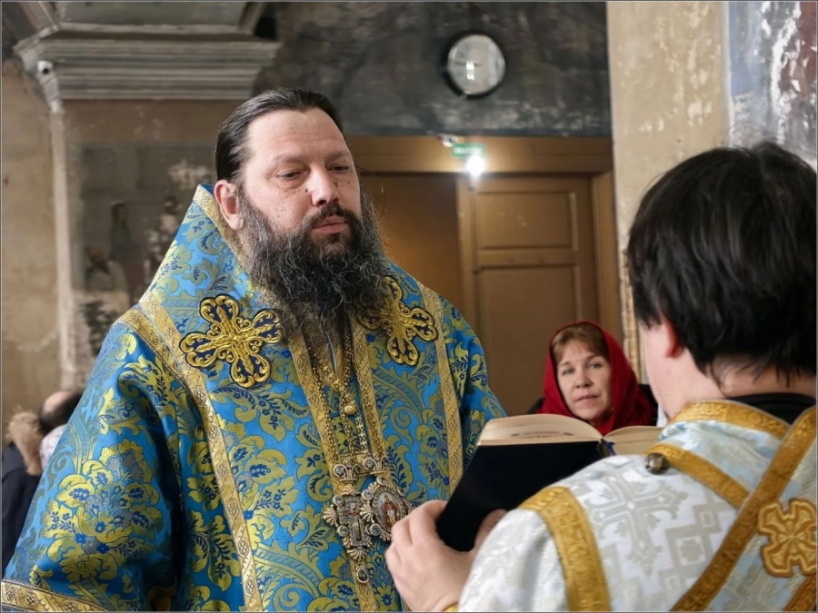 15 февраля 2026 года, в Неделю мясопустную, о Страшном Суде, праздник Сретения Господа Бога и Спаса нашего Иисуса Христа, епископ Набережночелнинский и Елабужский Гавриил совершил Божественную литургию в Спасском соборе города Елабуги.