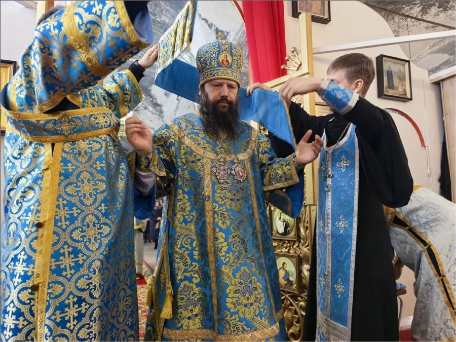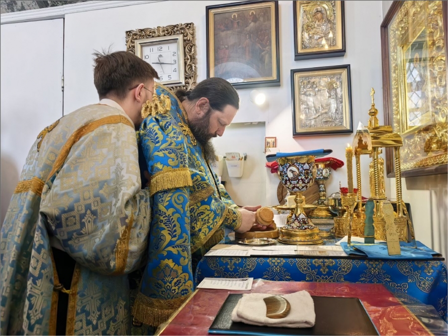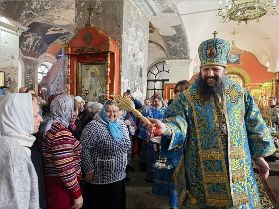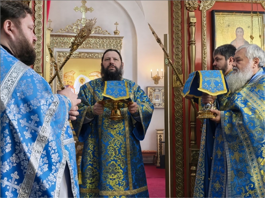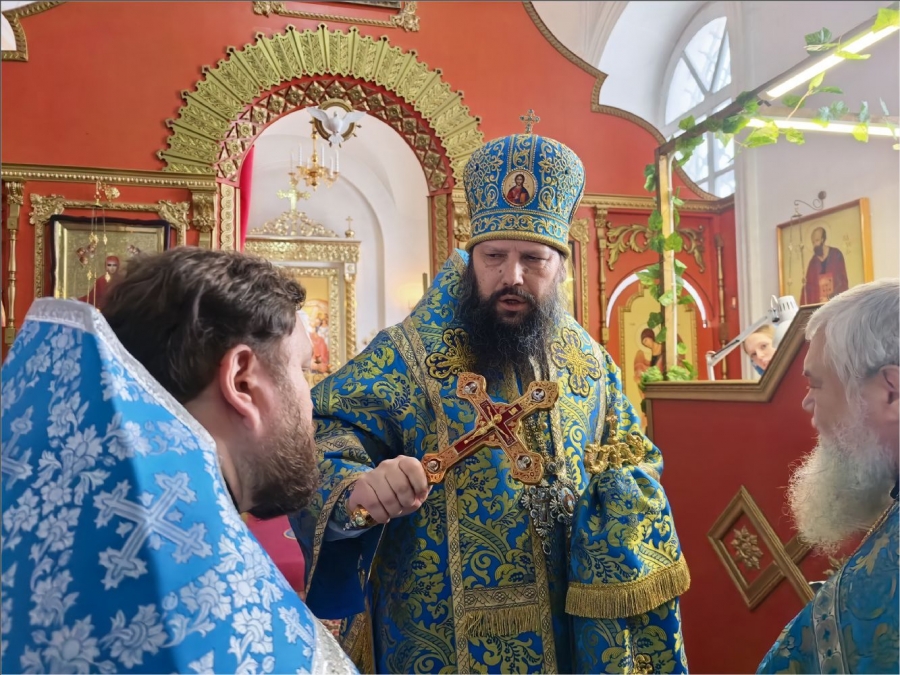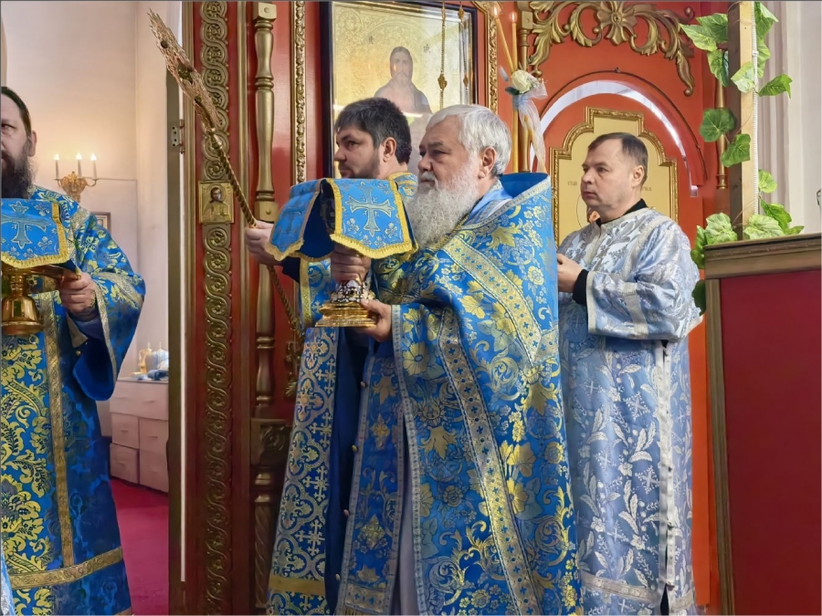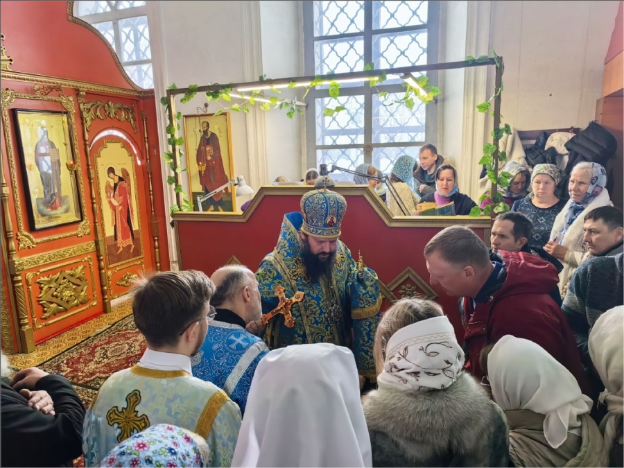 Его Преосвященству сослужили благочинный Закамского округа протоиерей Андрей Дубровин, клирики Спасского собора иерей Михаил Климов и иерей Роман Лепихин, клирик Свято‑Вознесенского кафедрального собора иерей Сергий Иноземцев. Диаконский чин возглавил протодиакон Дмитрий Половников. Песнопения исполнили приходской хор под управлением Натальи Кучерявенко.