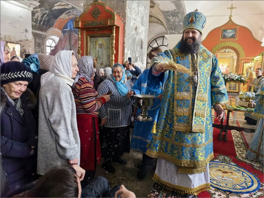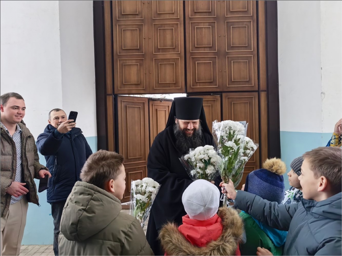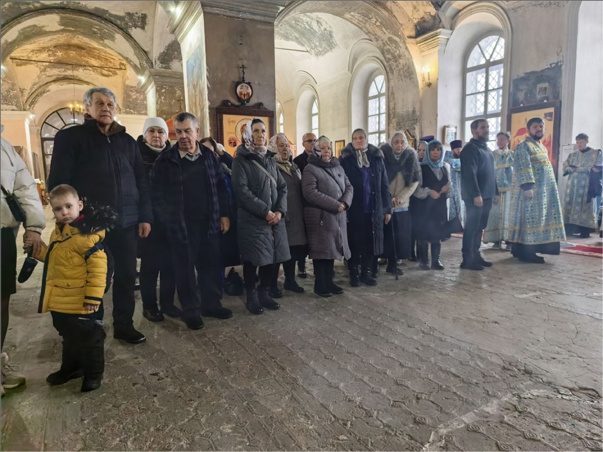 На мирной и сугубой ектениях были вознесены молитвы о Российском воинстве и о мире. По запричастном стихе иерей Роман Лепихин зачитал обращение Святейшего Патриарха Московского и всея Руси Кирилла по случаю празднования Дня православной молодёжи. После отпуста Литургии епископ Гавриил по традиции освятил свечи. Было совершено славление празднику Сретения.