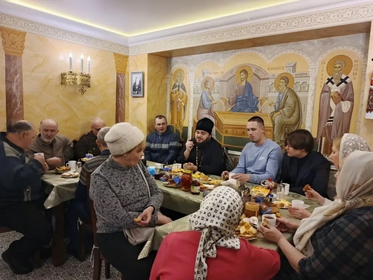 17 февраля 2026 года в трапезной Спасского собора состоялось чаепитие с настоятелем храма иеромонахом Кириллом Забавновым.