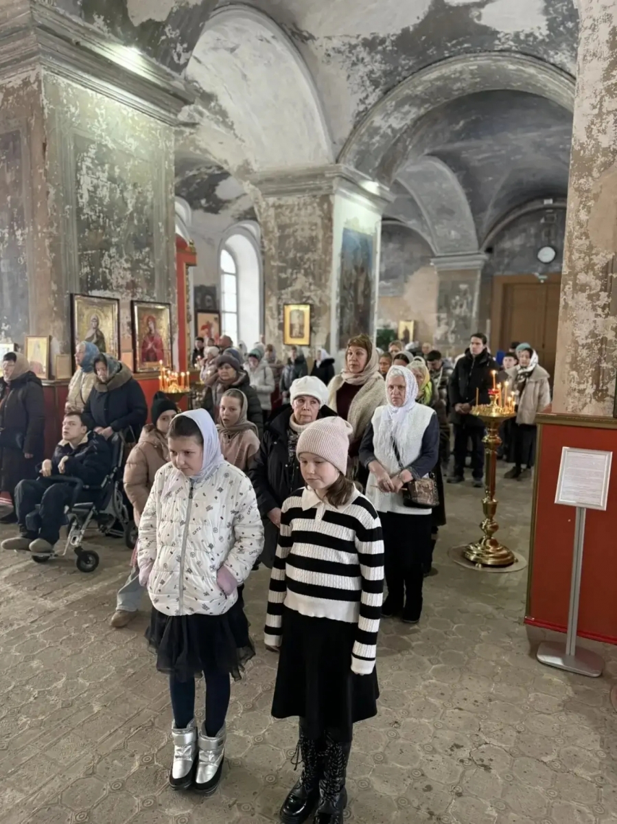 22 февраля 2026 года, в Неделю сыропустную, день воспоминания Адамова изгнания, день памяти святителя Тихона, Патриарха Московского и всея Руси, в Спасском соборе совершена литургия святителя Иоанна Златоуста.