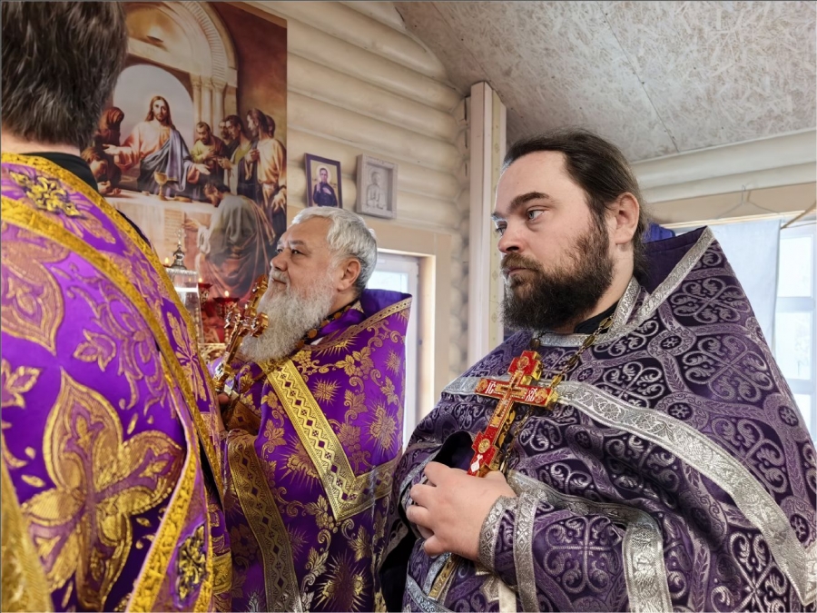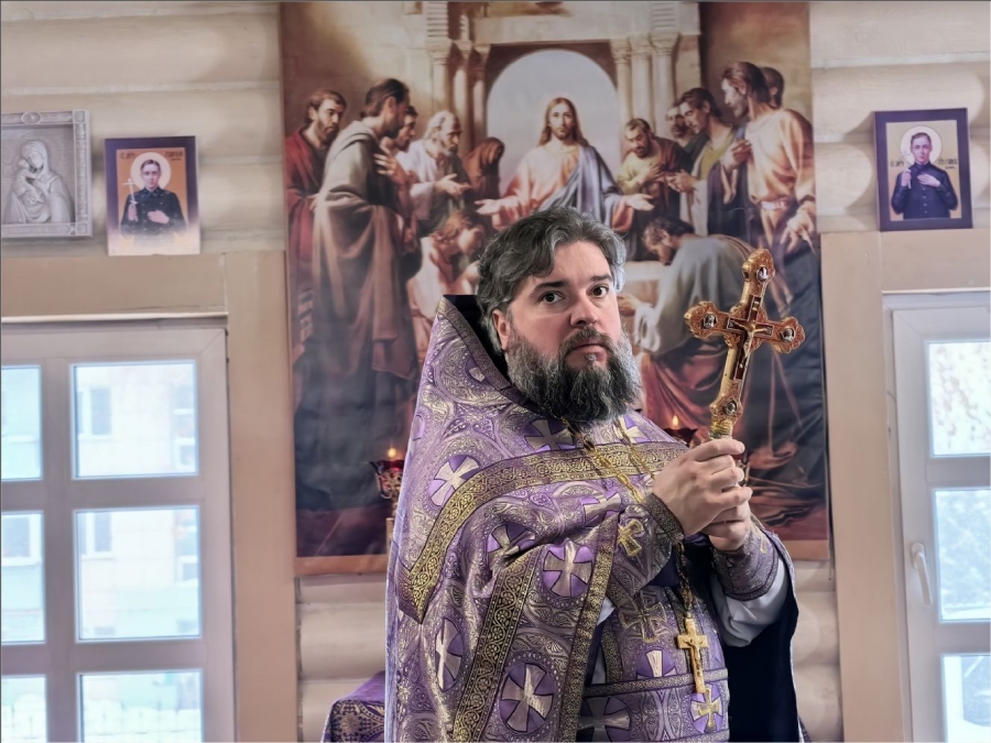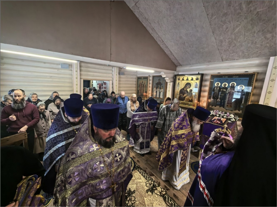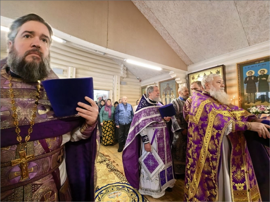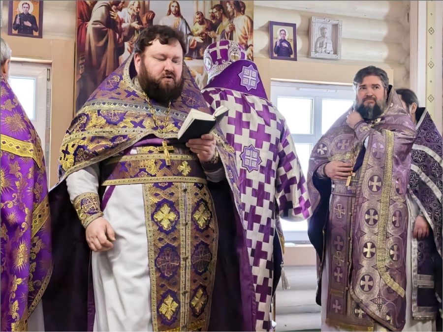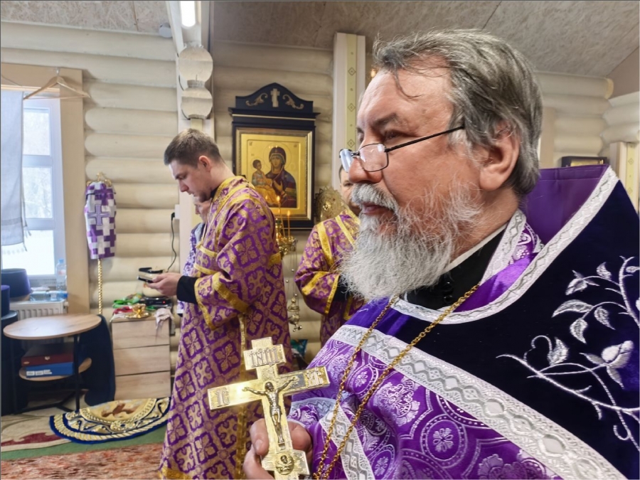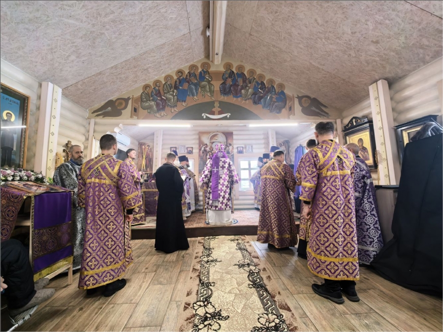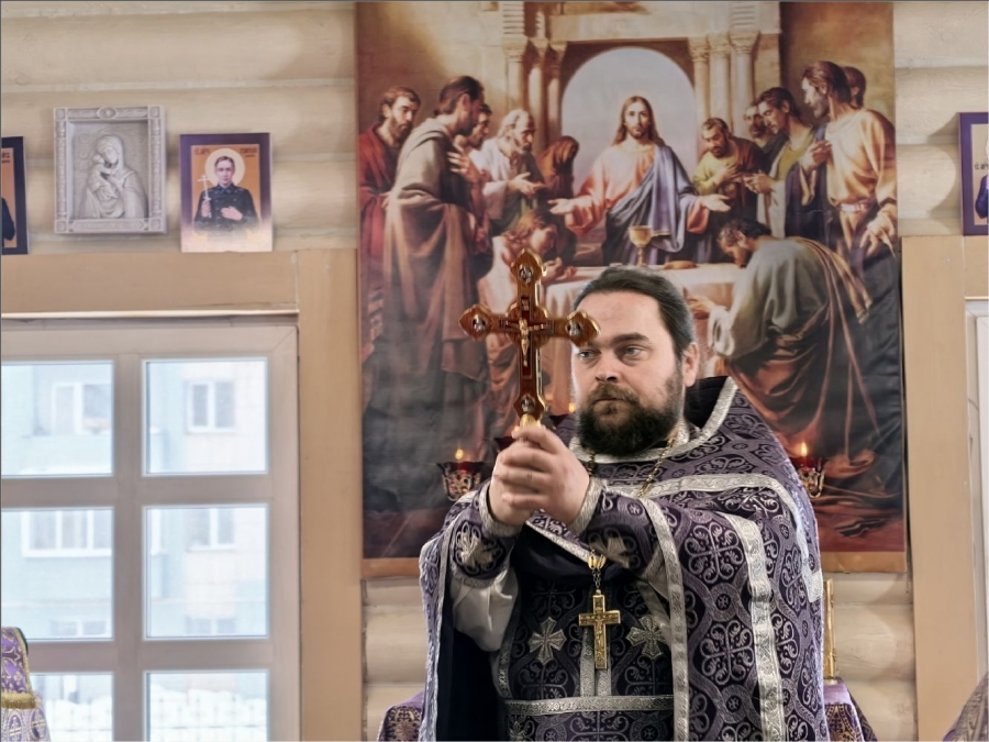 На мирной и сугубой ектениях были вознесены молитвы о Российском воинстве и о мире. По запричастном стихе проповедь произнёс протоиерей Владимир Силантьев.