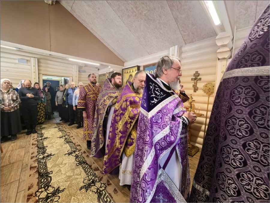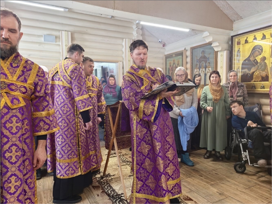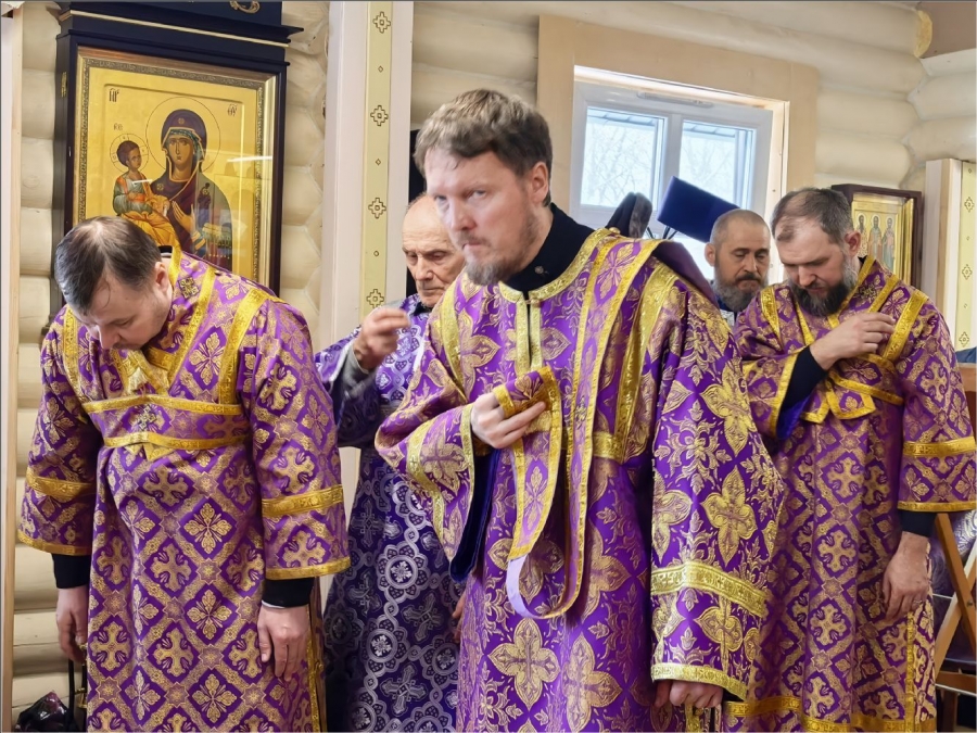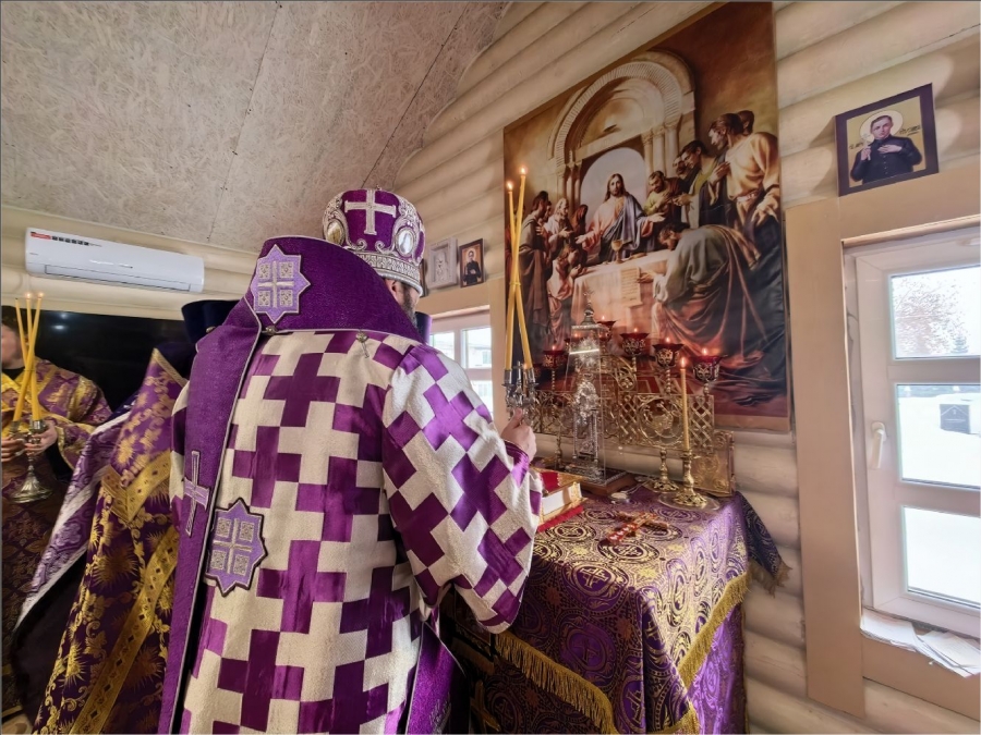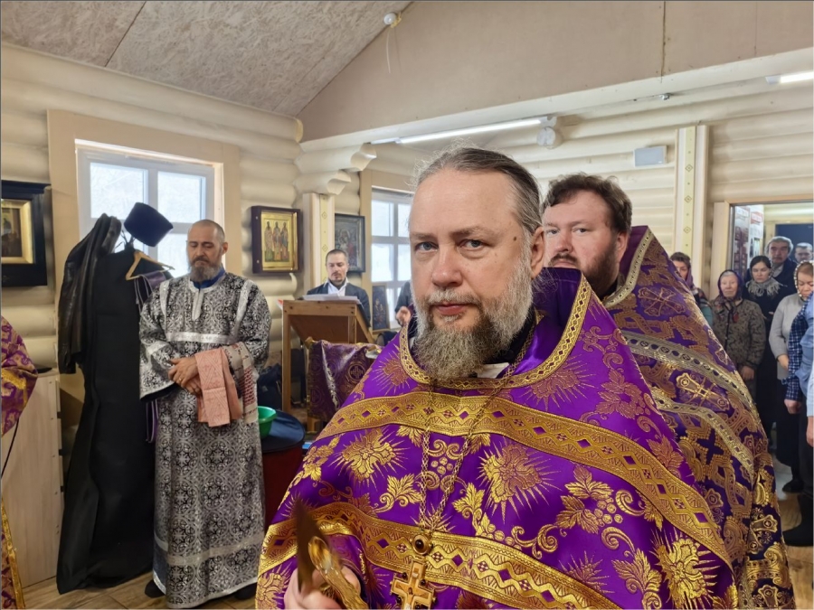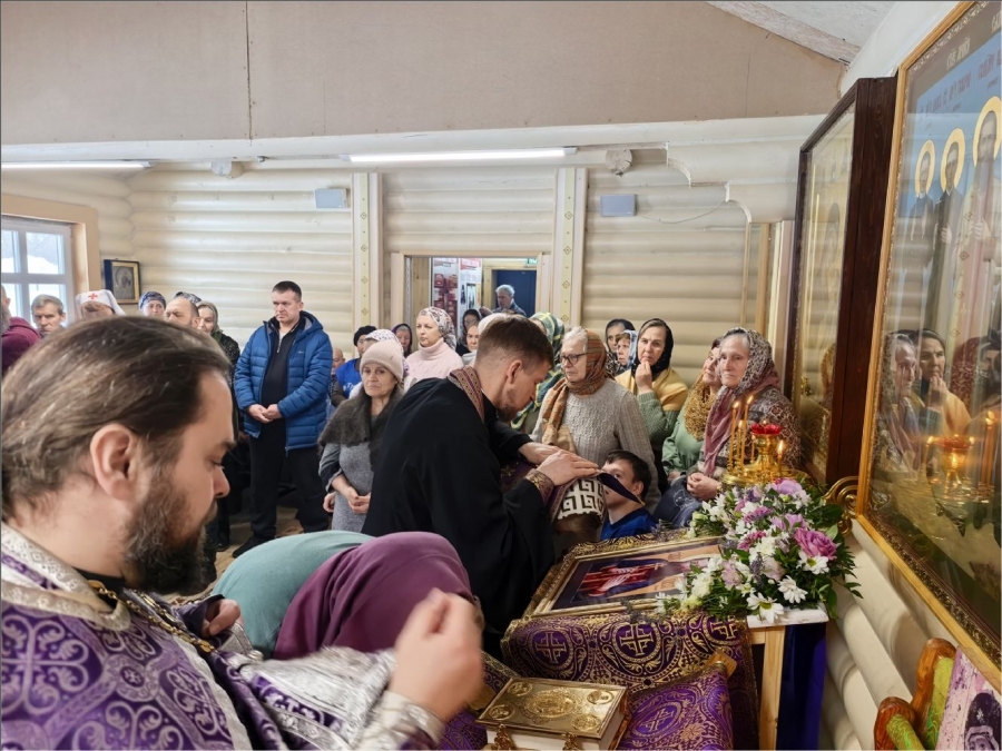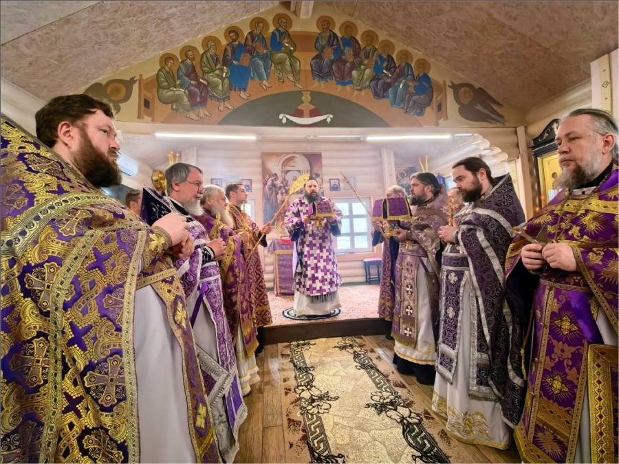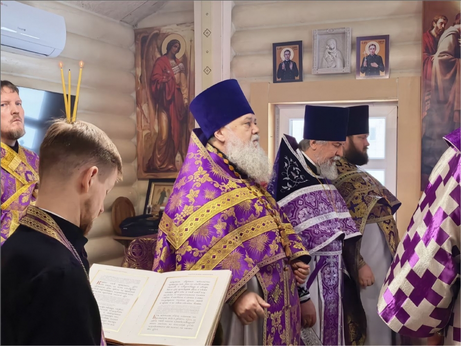На мирной и сугубой ектениях были вознесены молитвы о Российском воинстве и о мире. По запричастном стихе проповедь произнёс протоиерей Владимир Силантьев.