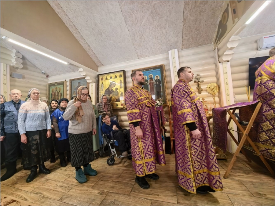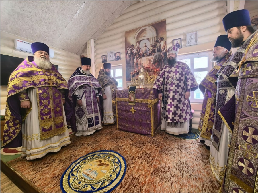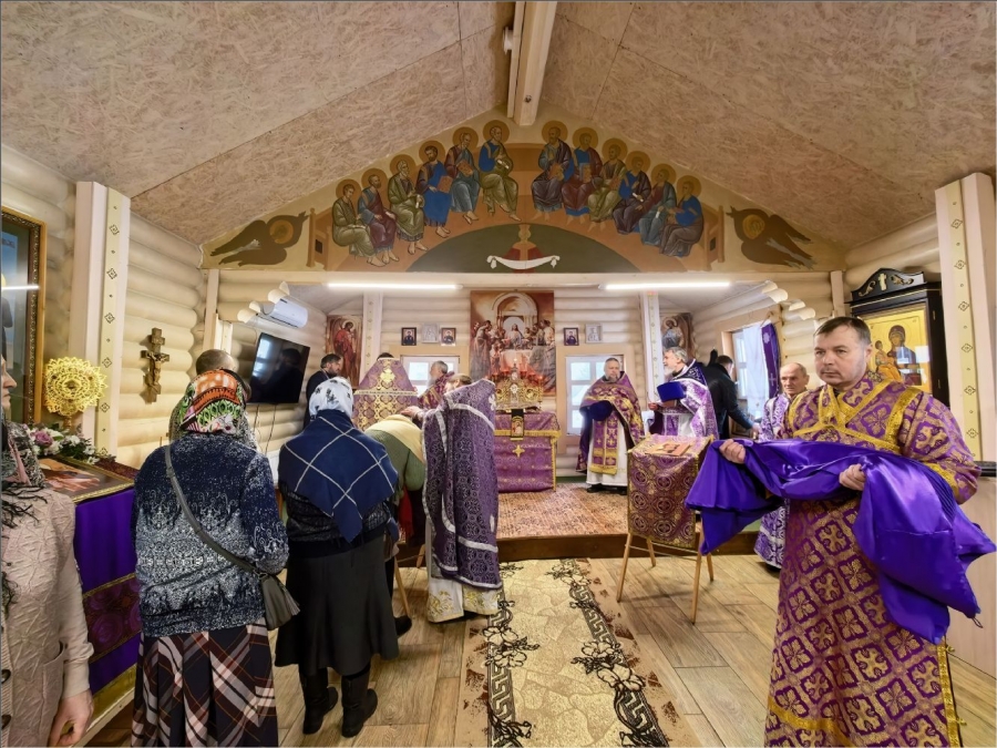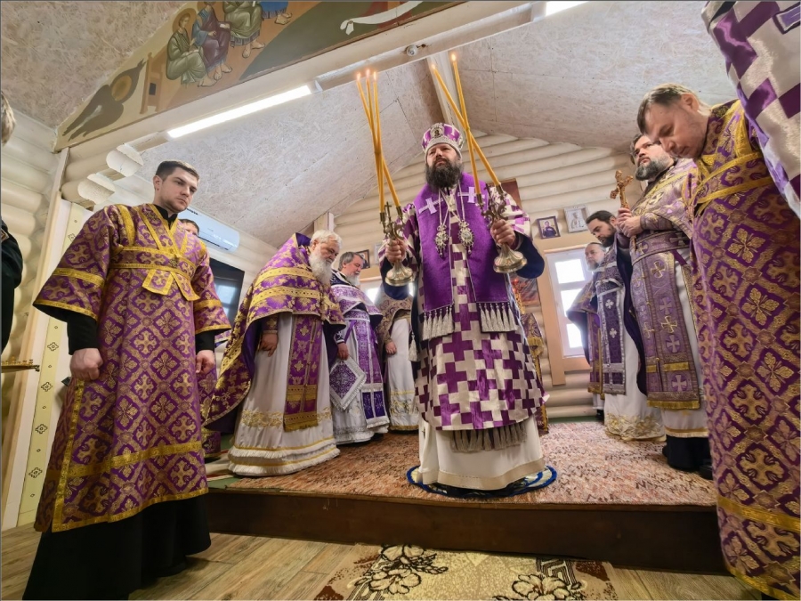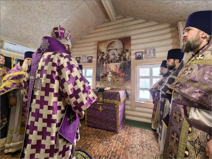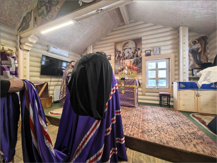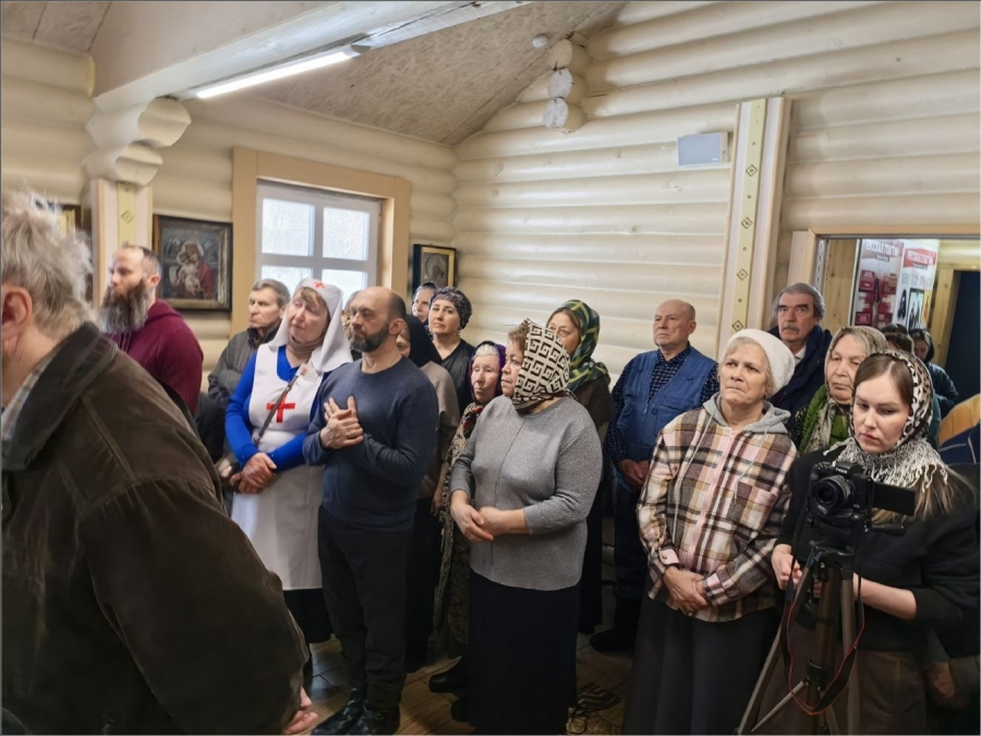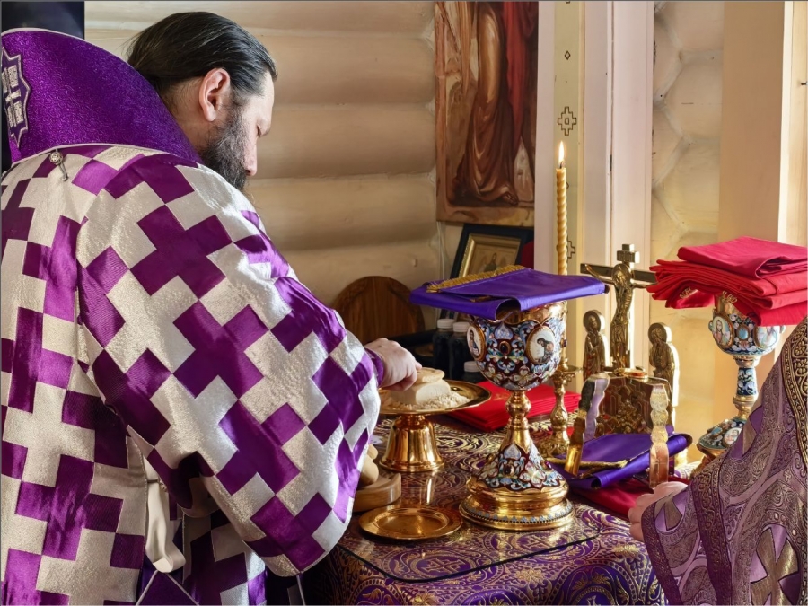 На мирной и сугубой ектениях были вознесены молитвы о Российском воинстве и о мире. По запричастном стихе проповедь произнёс протоиерей Владимир Силантьев.