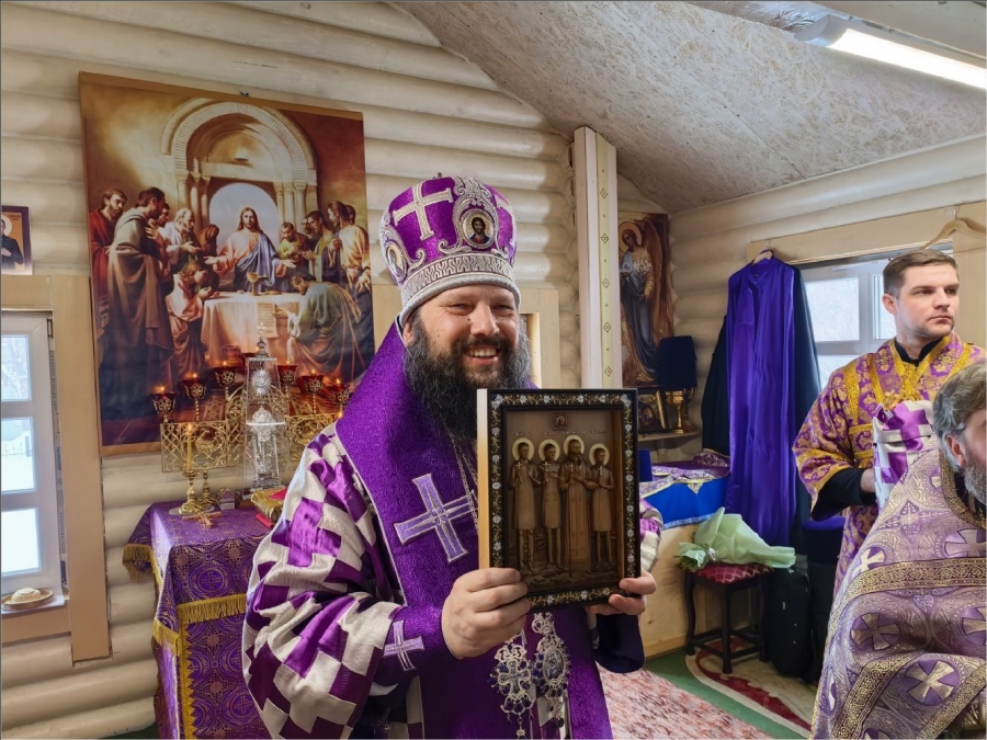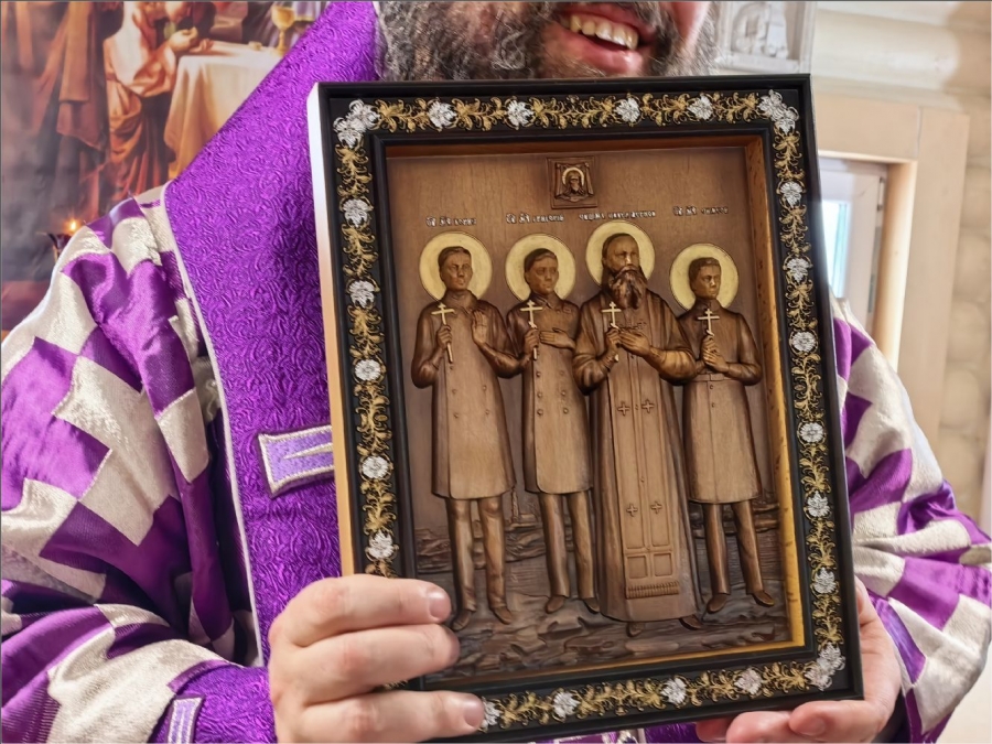 От лица общины отец Илья подарил епископу деревянную икону новомучеников Елабужских.