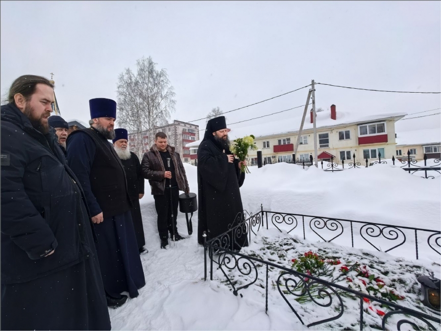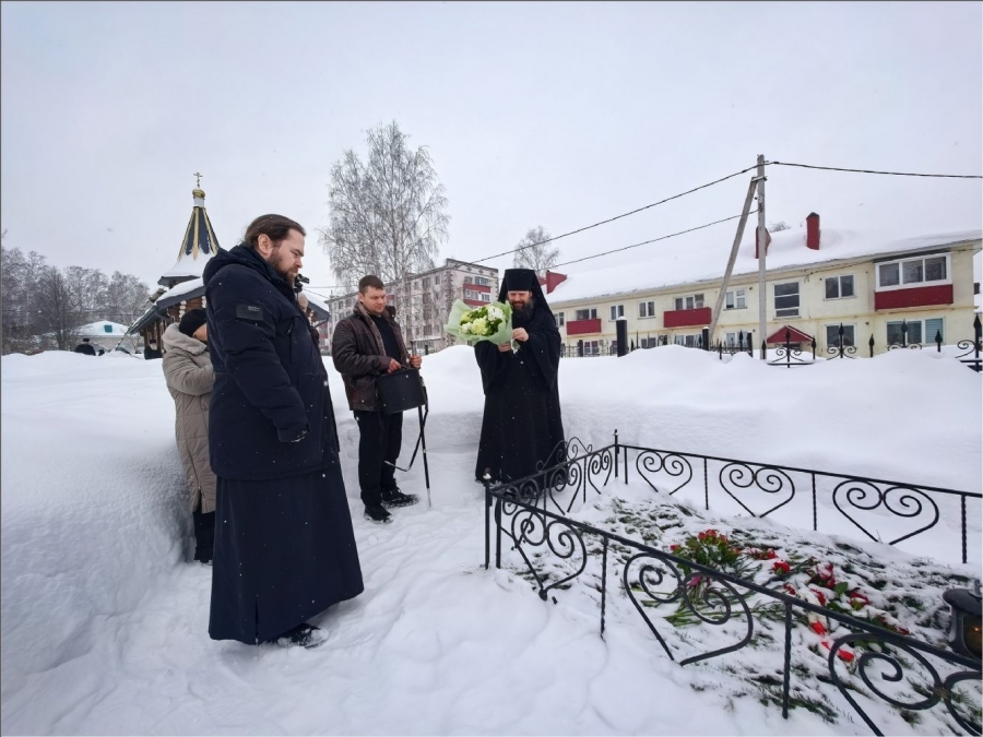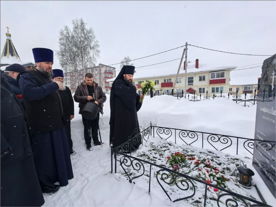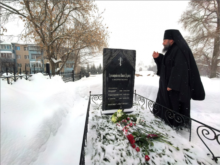 После богослужения епископ Гавриил посетил могилу Павла Дернова и его сыновей. Здесь он воспел величание святым и возложил букет цветов, почтив память страдальцев.