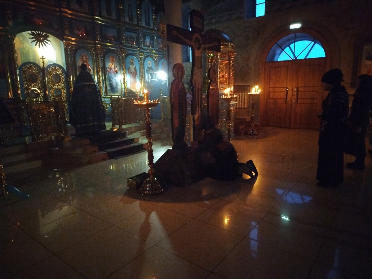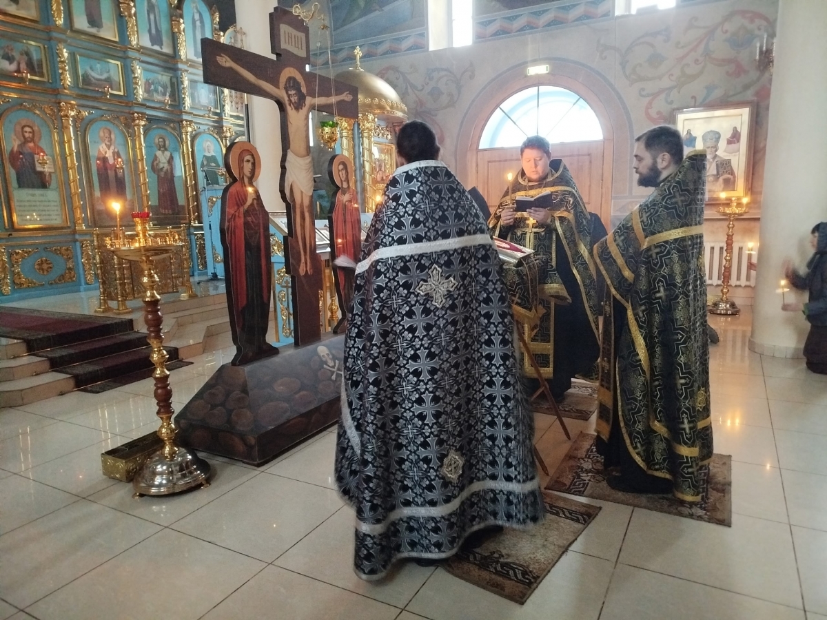Службу Страстям Христовым совершили клирики обители иерей Илия Павлов, иерей Даниил Кривов и иерей Артемий Танаев.