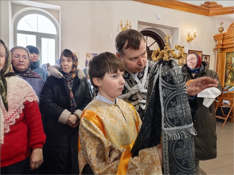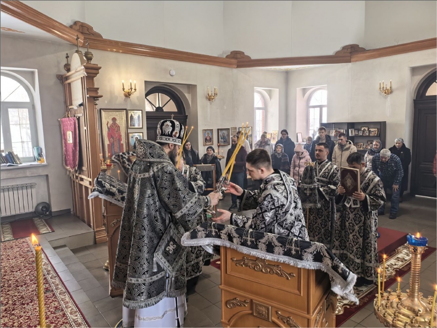 11 марта 2026 года, в среду третьей седмицы Великого поста, епископ Набережночелнинский и Елабужский Гавриил совершил Литургию Преждеосвященных Даров в храме великомученика Георгия Победоносца города Елабуги.