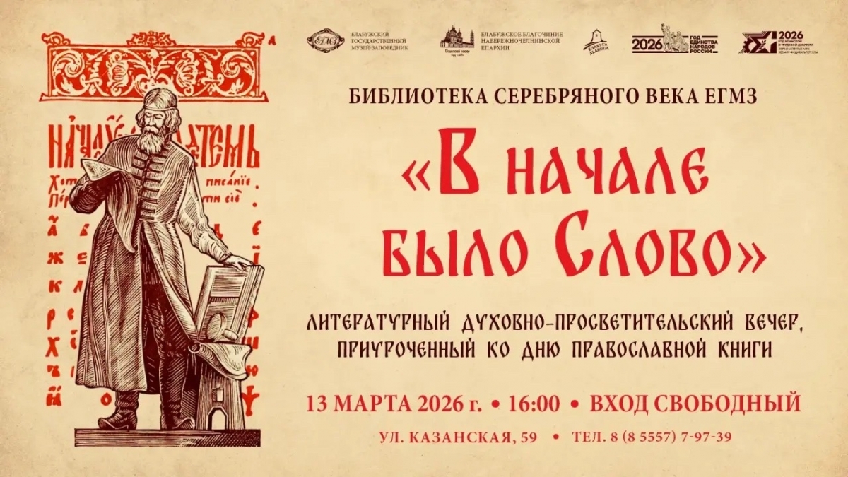 По благословению епископа Набережночелнинского и Елабужского Гавриила и при непосредственном содействии Елабужского государственного музея заповедника в Елабуге пройдёт литературный духовно-просветительский вечер «В начале было Слово».
