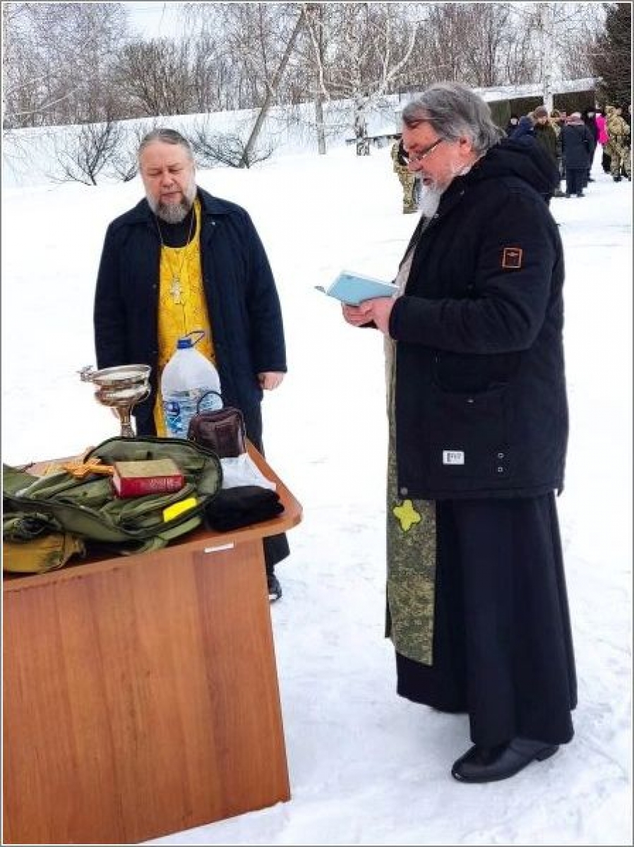 Во время богослужения священники благословили каждого бойца, произнесли слова поддержки и ободрения, окропили святой водой и помазали освящённым маслом — напоминая о силе молитвы и заступничестве Божием.
