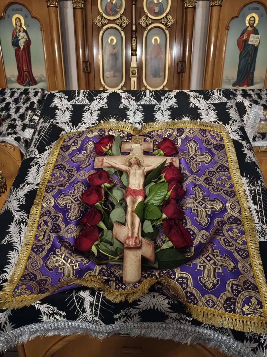 В субботу вечером прошло Всенощное бдение на Неделю Крестопоклонную. После Великого Славословия состоялся торжественный вынос Креста, с чином поклонения ему. Богослужения совершил настоятель прихода иерей Сергий Саутин.