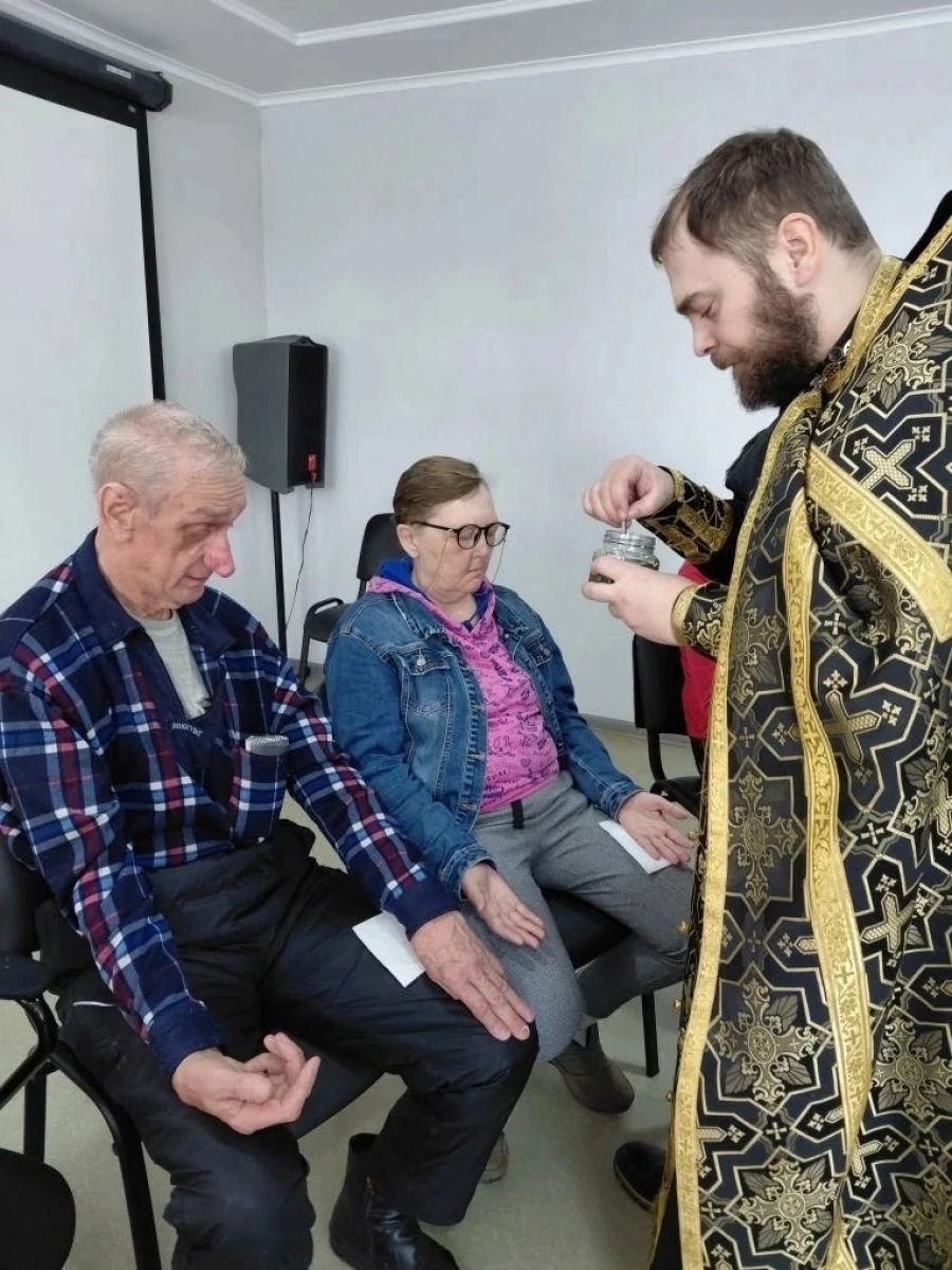 По окончании елеосвящения отец Даниил обратился ко всем присутствующим с духовным наставлением, пожелал постояльцам и сотрудникам дома-интерната помощи Божией в дни Великого поста, душевного и телесного здравия.