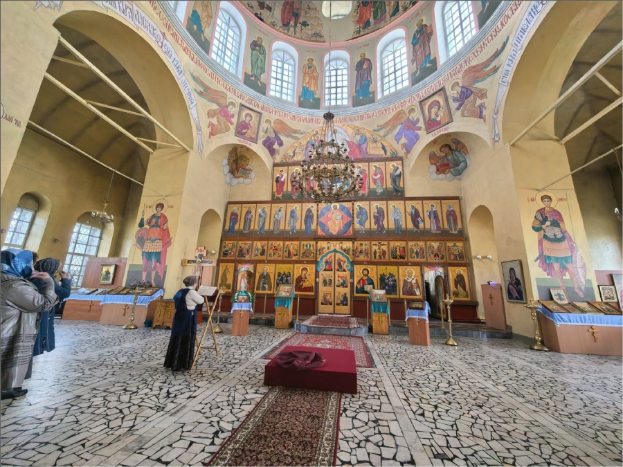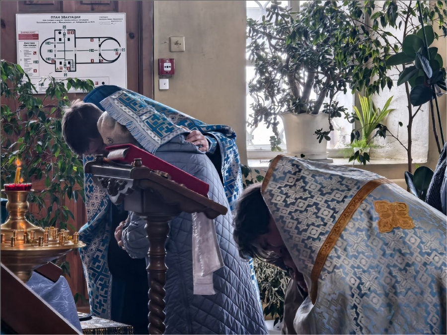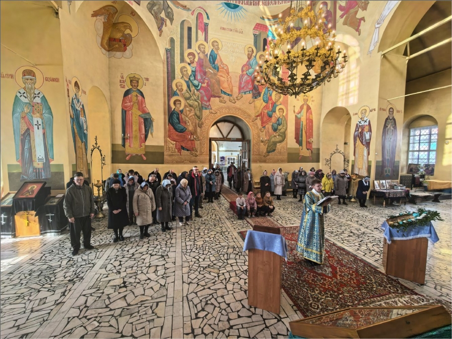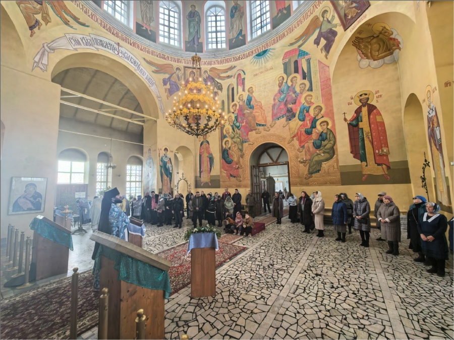 На сугубой и мирной ектениях были вознесены молитвы о Российском воинстве и о мире. Проповедь по запричастном стихе произнес иеромонах Кирилл (Забавнов).