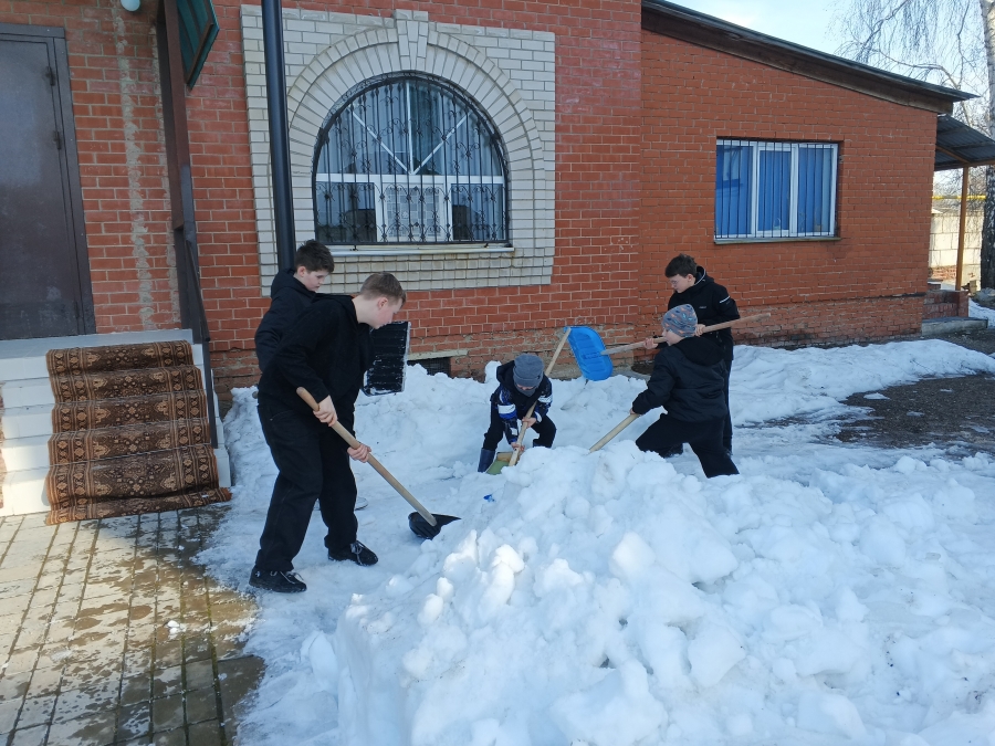 Дорожка вокруг храма была расчищена от снега.