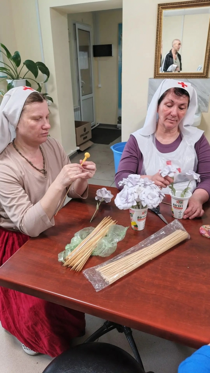 В воскресенье, 29 марта 2026 года, в Доме Милосердия братья и сестры Елабужского общества милосердия в честь святой преподобномученицы Великой княгини Елисаветы организовали мастер – класс по изготовлению белых бумажных цветов.