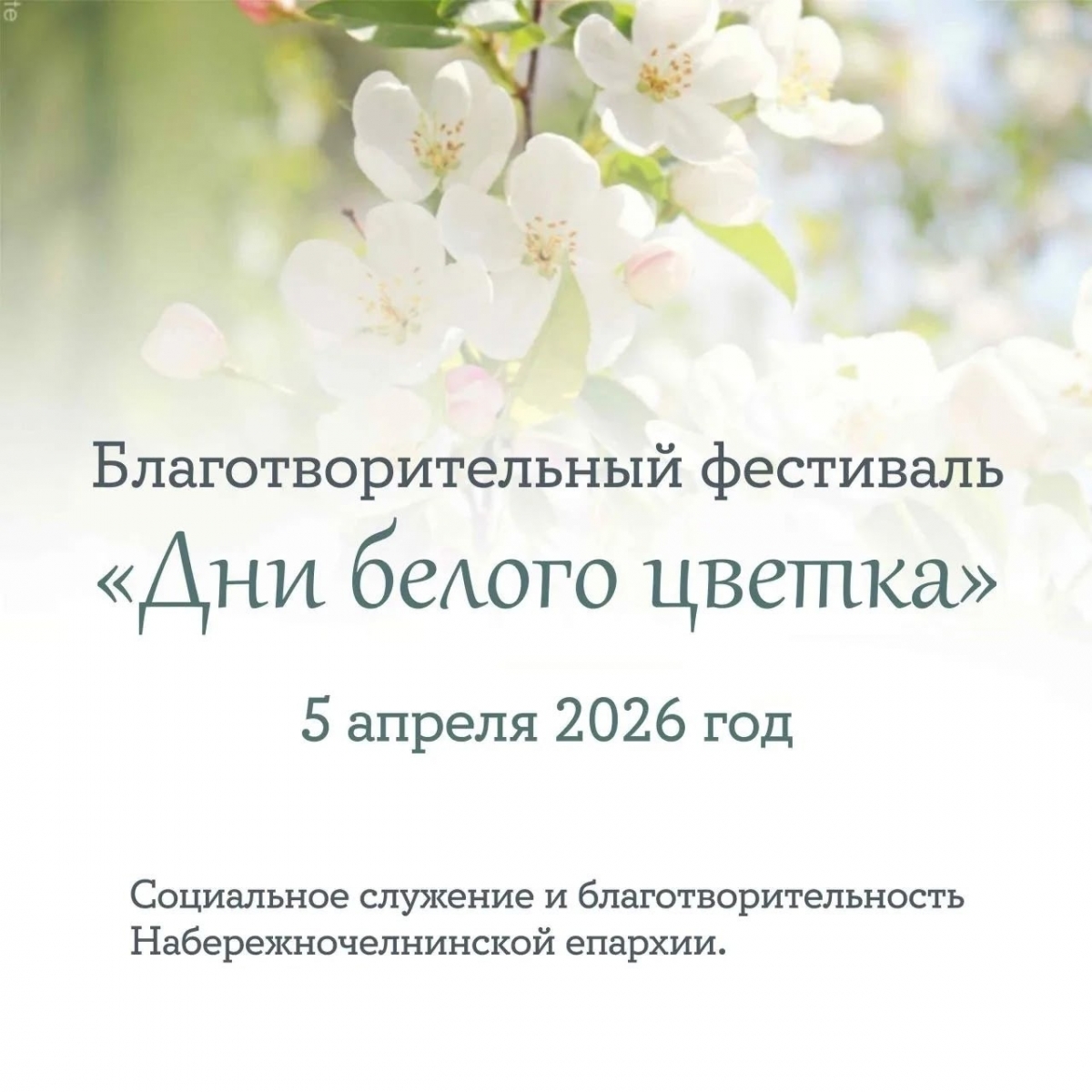 5 апреля 2026 года, в праздник Входа Господня в Иерусалим, Вербное воскресенье, по благословению епископа Набережночелнинского и Елабужского Гавриила на приходах Набережночелнинской епархии состоится традиционная благотворительная акция «Белый цветок». Мероприятие, организатором которого выступает Социальный отдел Набережночелнинской епархии, проводится в рамках ежегодного Фестиваля «Дни белого цветка». В этот день прихожане храмов и все неравнодушные жители города смогут пожертвовать средства для нуждающихся.