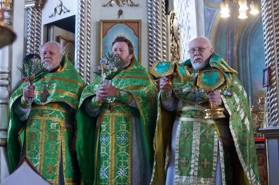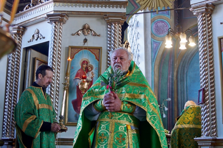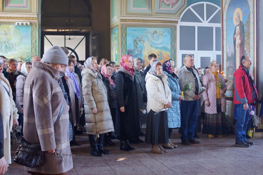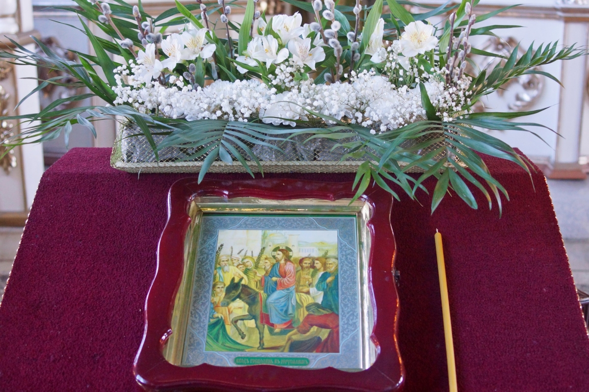 Накануне, вечером 4 апреля, в соборе было отслужено торжественное праздничное Всенощное бдение, во время которого состоялось освящение вербы.