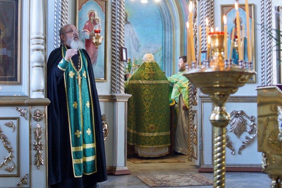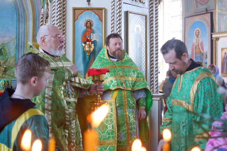Вечернее богослужение и Литургию возглавил настоятель храма иерей Симеон Лепихин в сослужении клириков прихода.