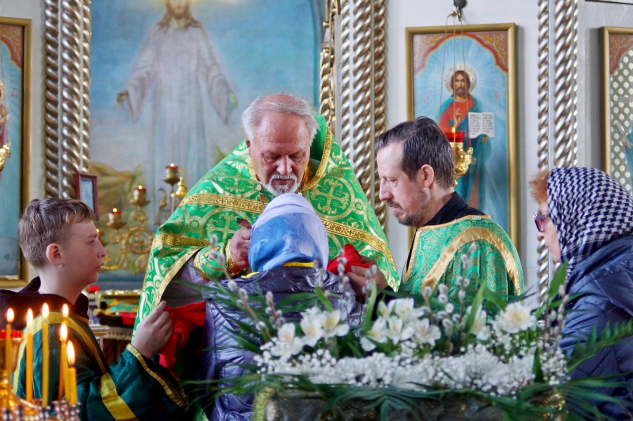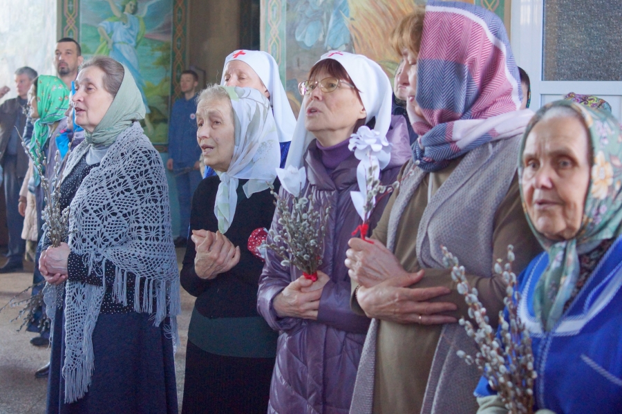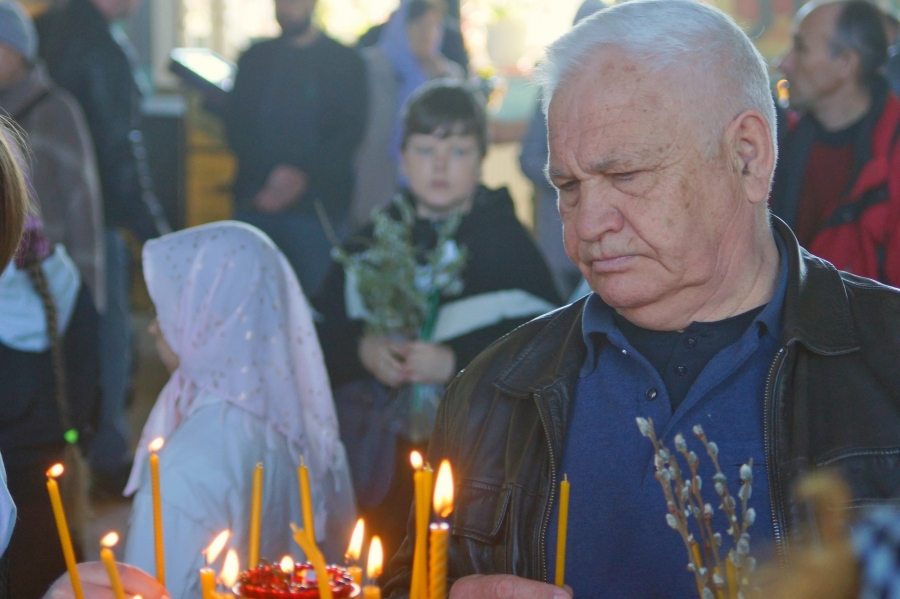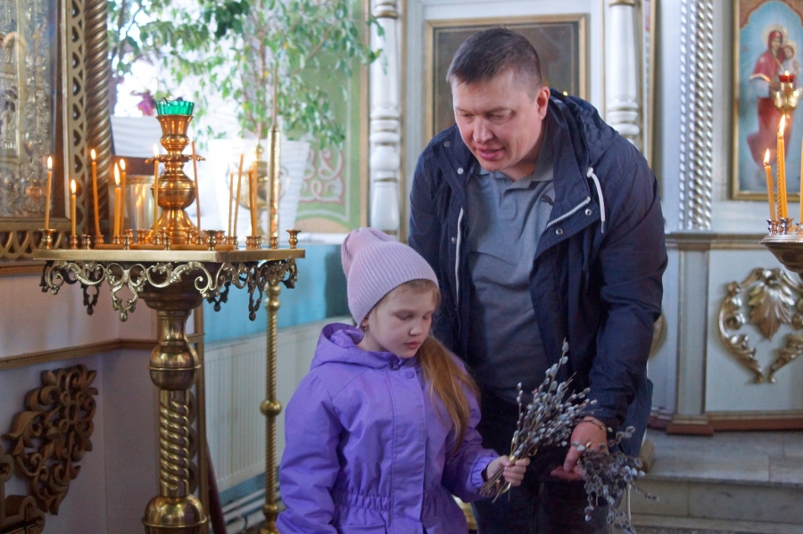 По окончании богослужения батюшка поздравил всех с праздником Входа Господня в Иерусалим, причастников с принятием Святых Даров. По традиции каждый получил веточки освященной вербы.