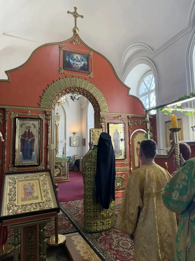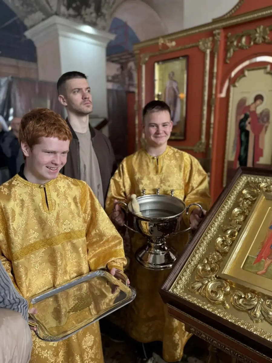 Литургию святителя Иоанна Златоуста совершили: настоятель собора иеромонах Кирилл (Забавнов) и клирик собора иерей Михаил Климов.