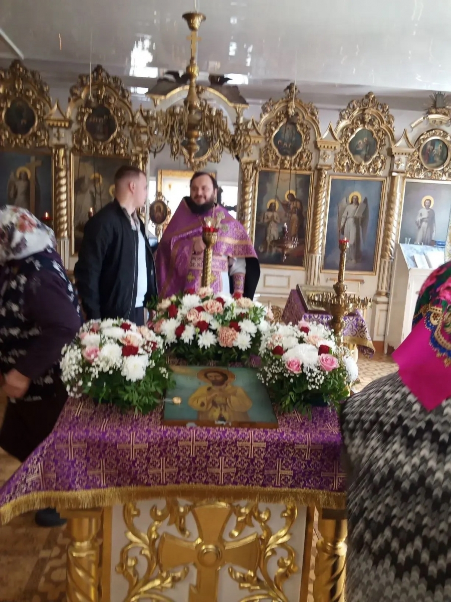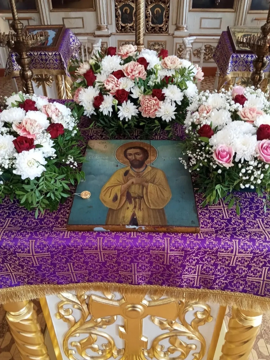 Перед началом богослужения иеромонах Кирилл доставил в храм частицу святых мощей преподобного Алексия человека Божия.