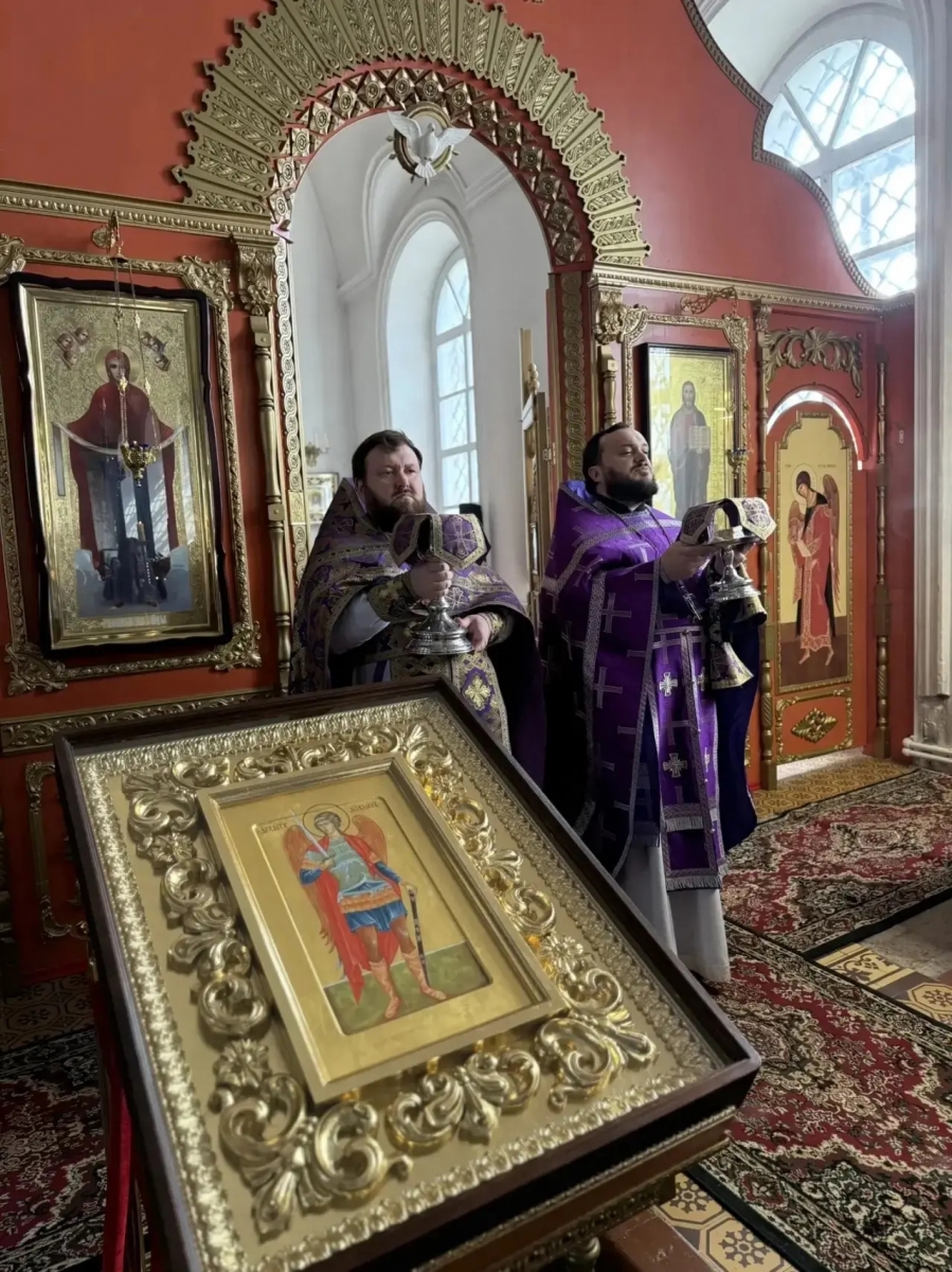 Богослужение совершили настоятель Спасского собора иеромонах Кирилл (Забавнов) и клирик собора иерей Михаил Климов.