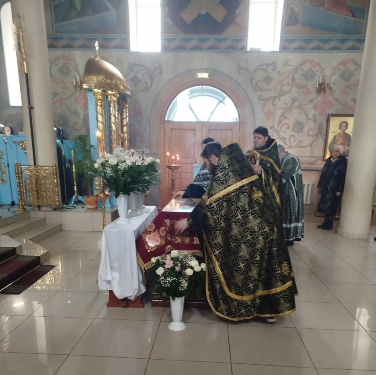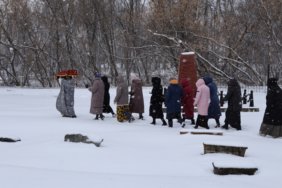 10 апреля 2026 года, вечером в Страстную Пятницу, в храме Казанской иконы Божией Матери Елабужского женского монастыря священнослужителями обители была совершена утреня Великой Субботы с Чином погребения Плащаницы. За богослужением молились игумения Вера с сестрами обители, прихожане и паломники.