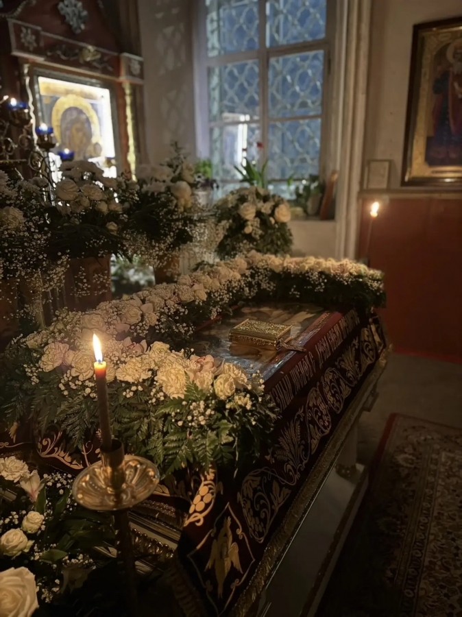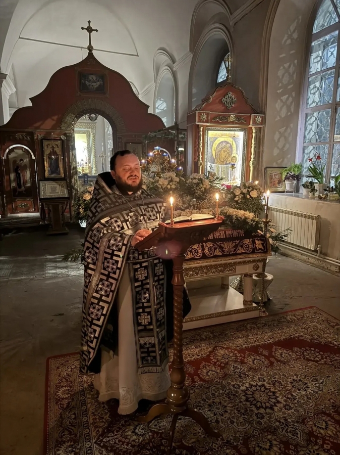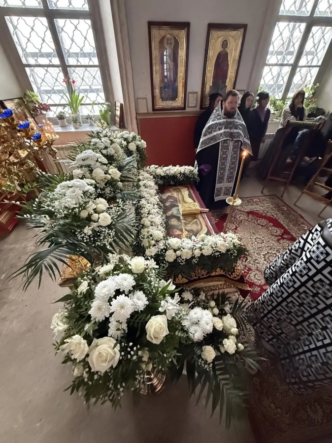 Отец Кирилл произнёс проповедь, стоя у Плащаницы, затем был пропет умилительный канон на Плач Богоматери.